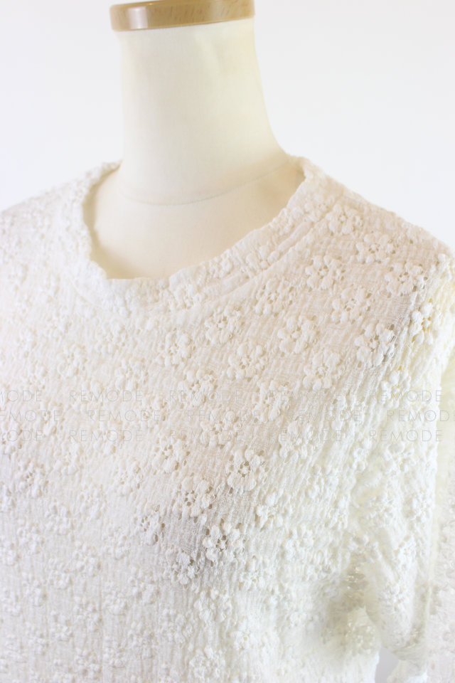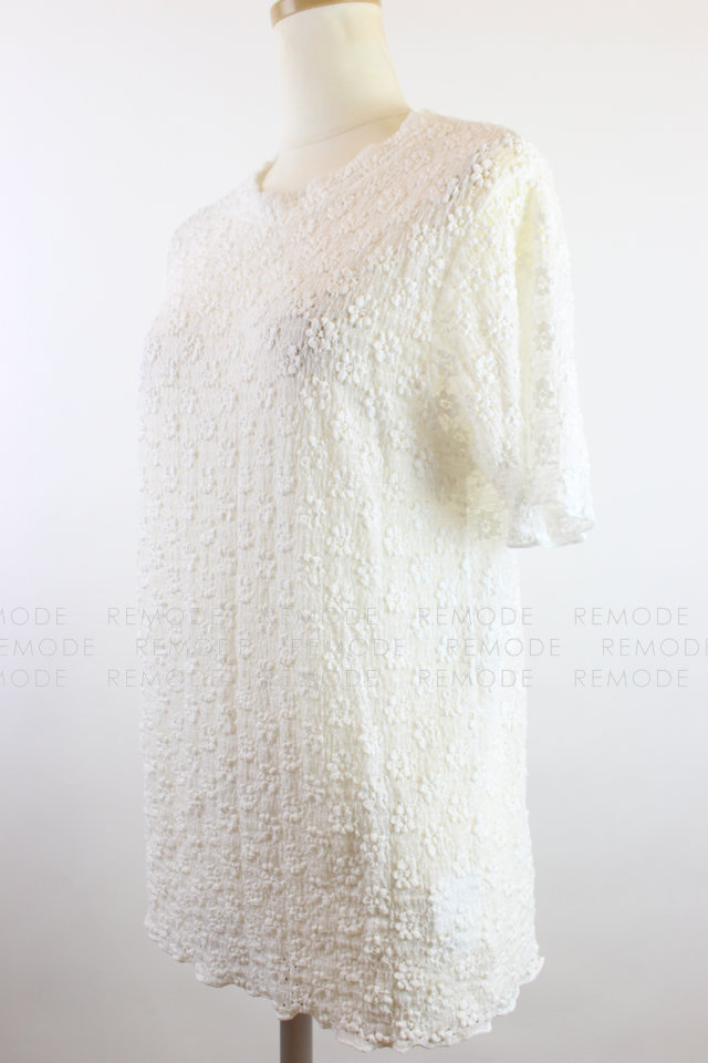 - 立体的な花モチーフのレースが上品な印象を与える半袖トップス。軽い着心地と程よいストレッチで、デイリーから特別な日にも活躍します。1枚で華やかさが際立ち、シンプルなボトムスと合わせるだけで大人可愛いスタイリングが完成。夏のワードローブにおすすめの一着です。