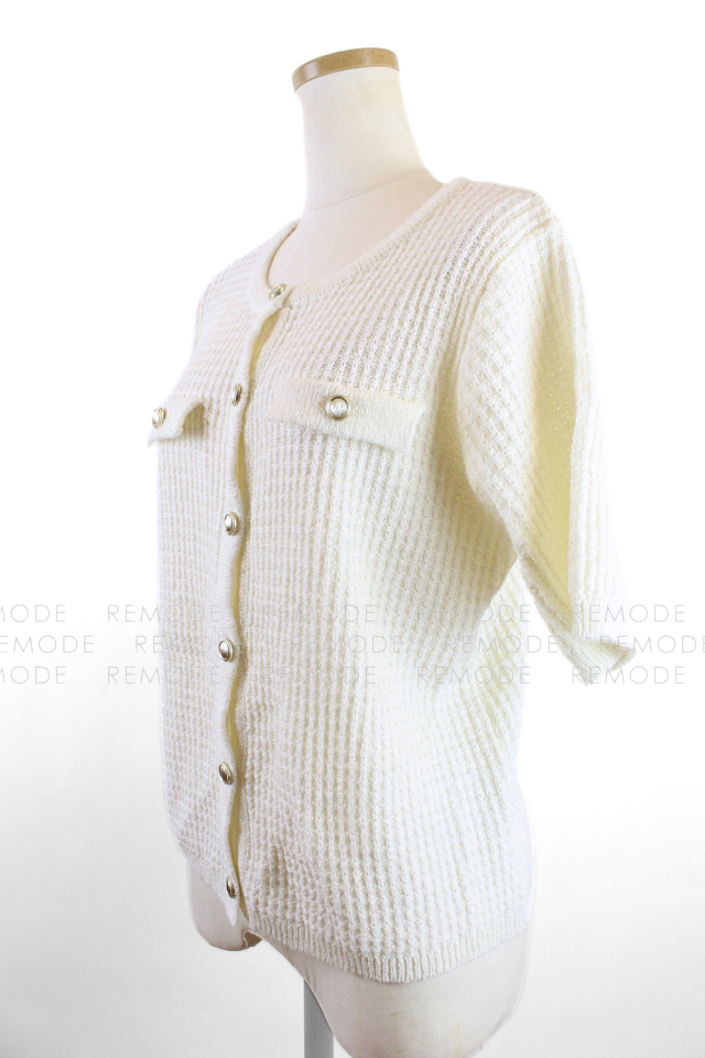- ツイード調の編地が目を惹く、綿混素材のニットカーディガン。