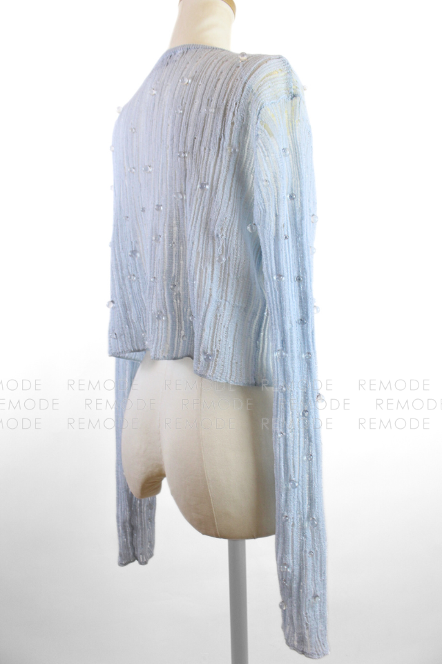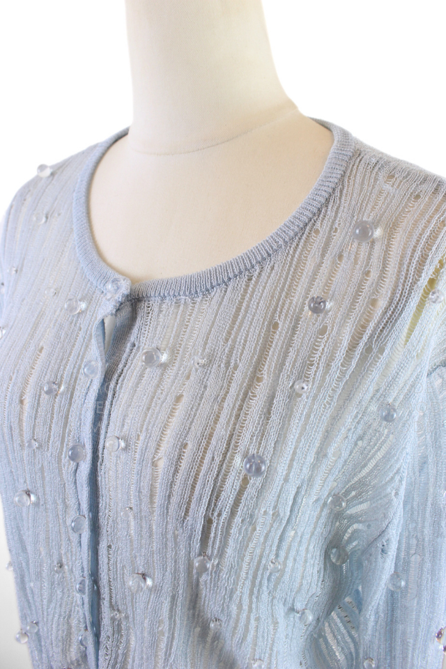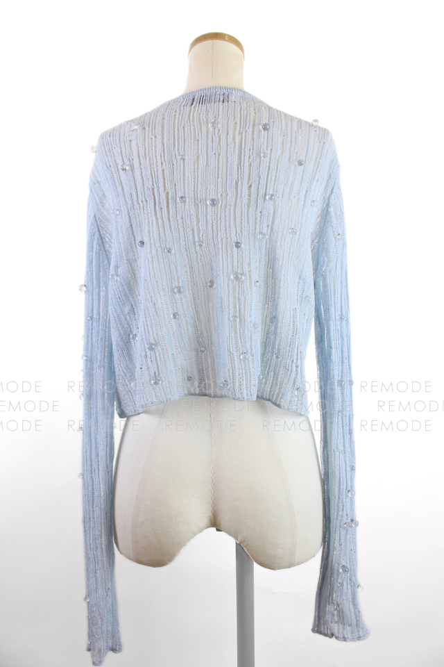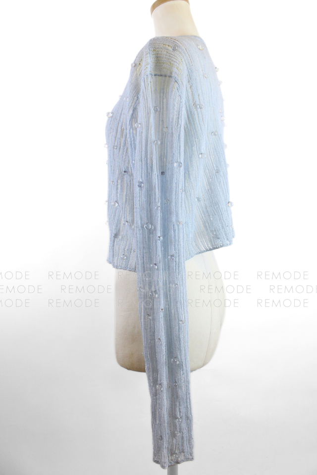 - 透明感のあるビジューを散りばめた、華やかなシアーニットカーディガン。