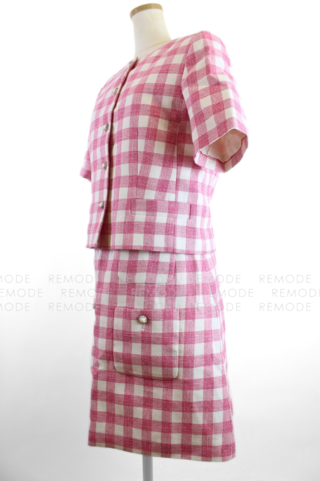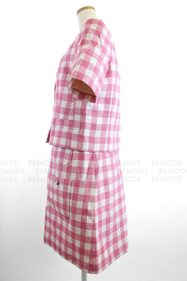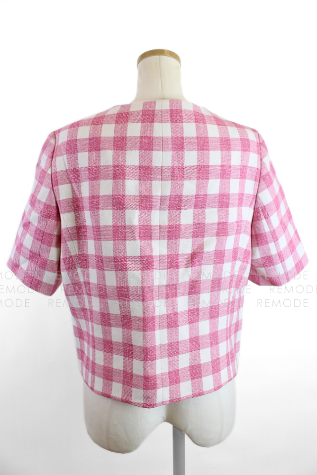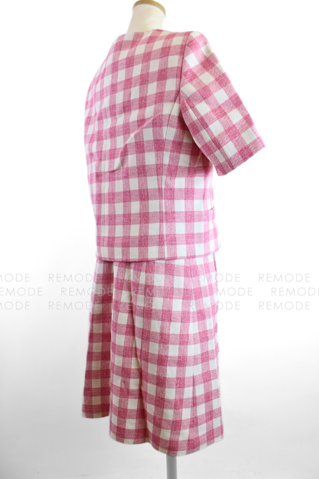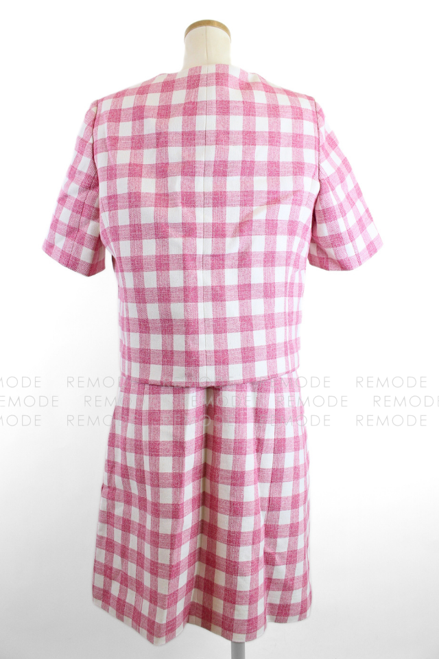 - エクリュ×キャンディピンクのギンガムチェックが目を惹く、レトロでフェミニンなセットアップ。