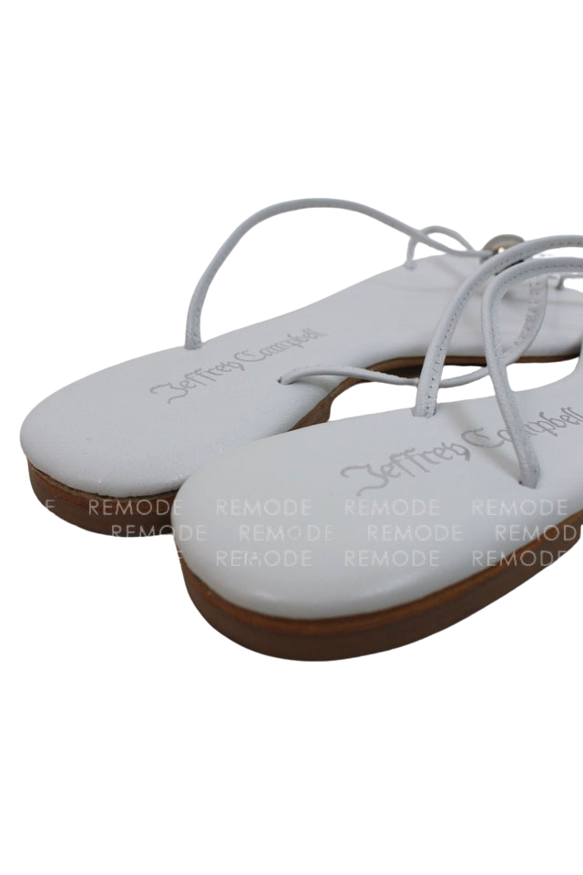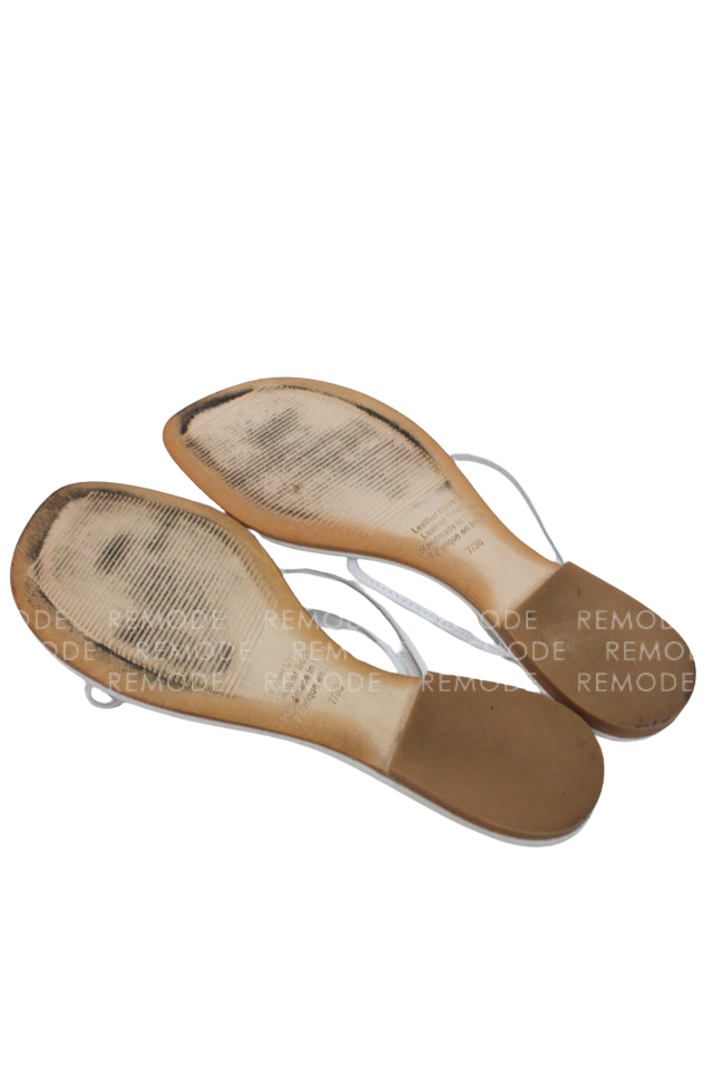 - 洗練されたホワイトレザーに、甲部分にあしらわれたシルバーパーツがアクセントのフラットサンダル。華奢なストラップとスリップオン仕様で、抜け感のある足元を演出します。レザーフットベッドだから素足にも優しく、インド製ハンドメイドならではの上質感も魅力。リゾートやタウンユースに幅広く活躍するアイテム。