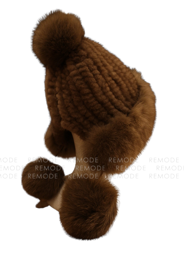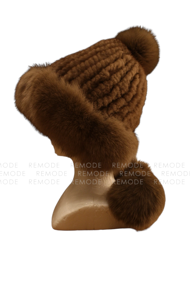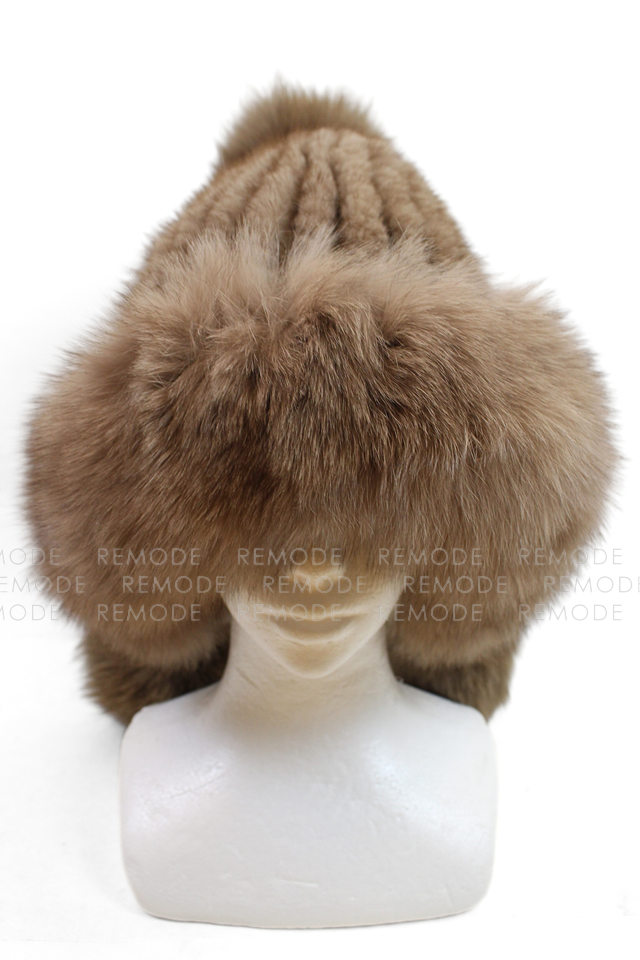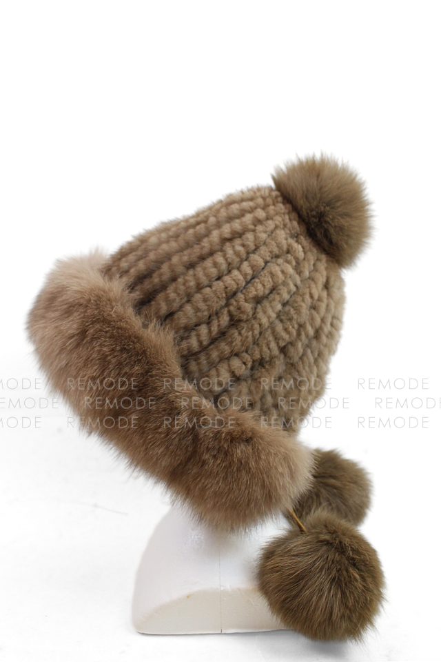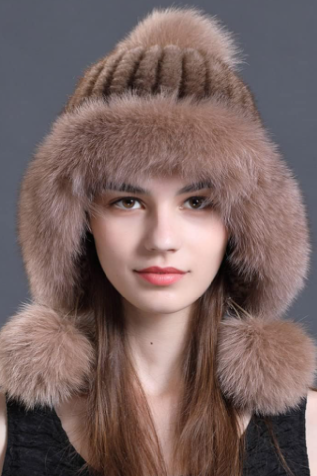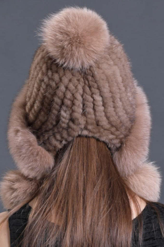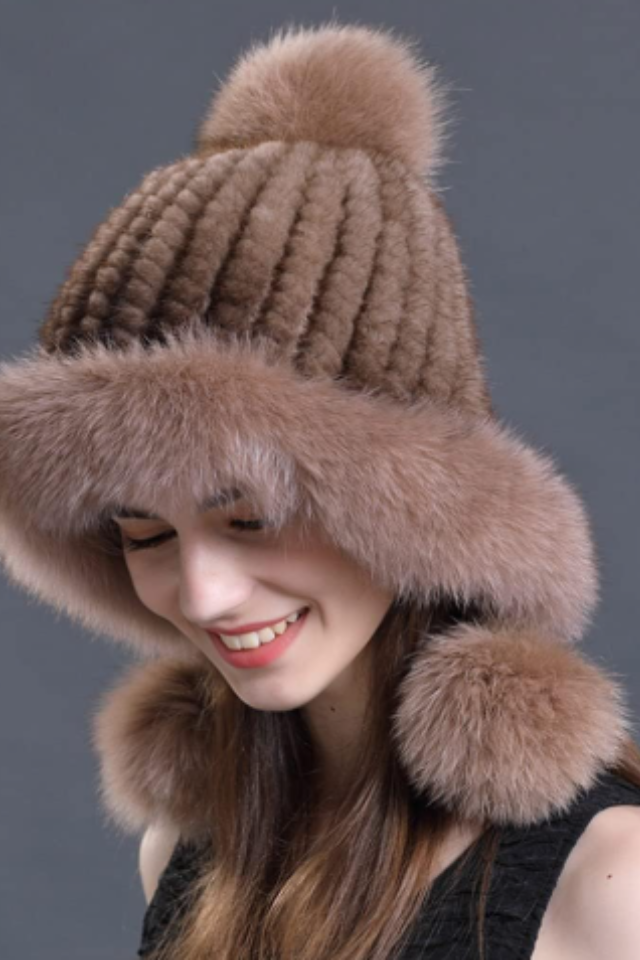ミンクファー調ニット帽 ポンポン付き|AYAKO