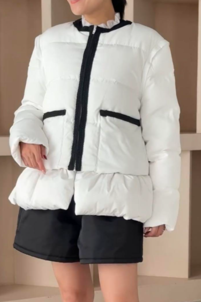 - バイカラーデザインが目を引く、着こなし自在の4wayアウター。袖やフリル部分は取り外し可能で、ベストやジャケットの形を変えて助かります。使い道に応じて秋口~春先まで長く活躍するアイテム。気分やシーンに合わせてアレンジできる、優秀な一着です。
