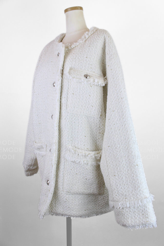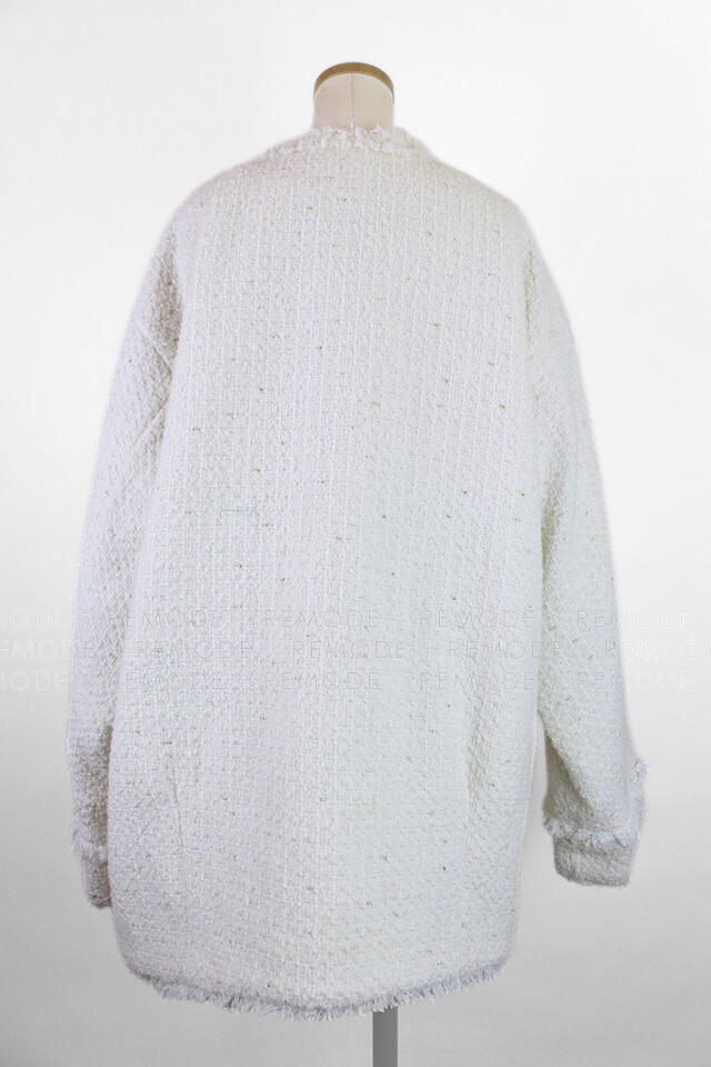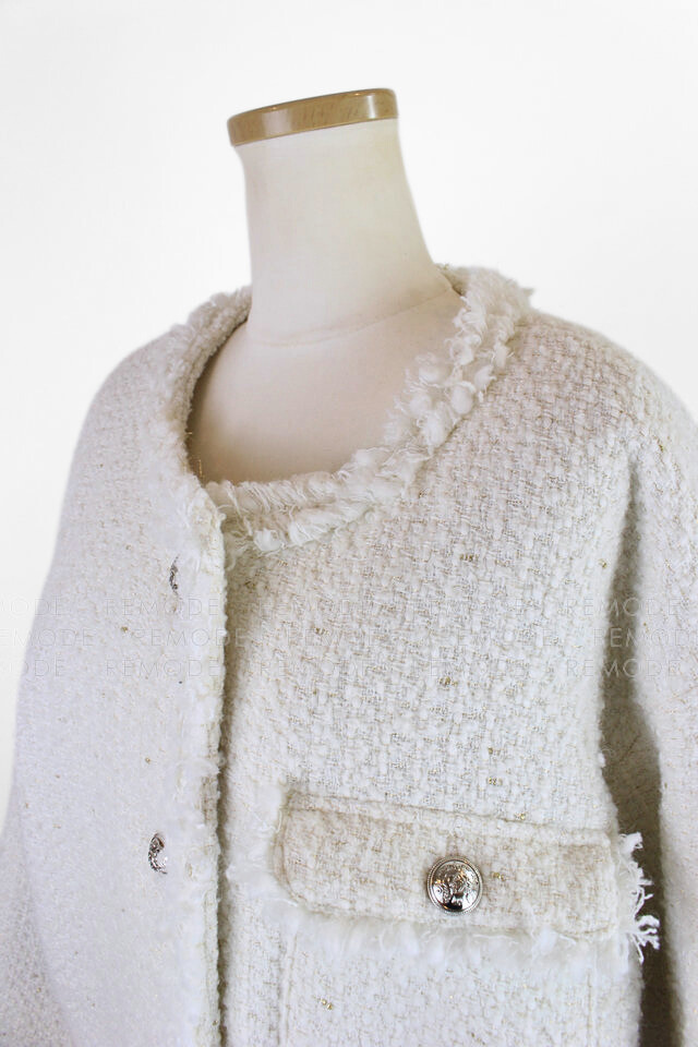 - 高級感のあるツイード素材にエンブレムボタンを添えた上品な一着。フリンジがアクセントとなり、きれいめからカジュアルまで幅広く活躍します。 普段使いはもちろん、特別な日にもおすすめ。 上品さと上品感の両方を叶えてくれるジャケットです。