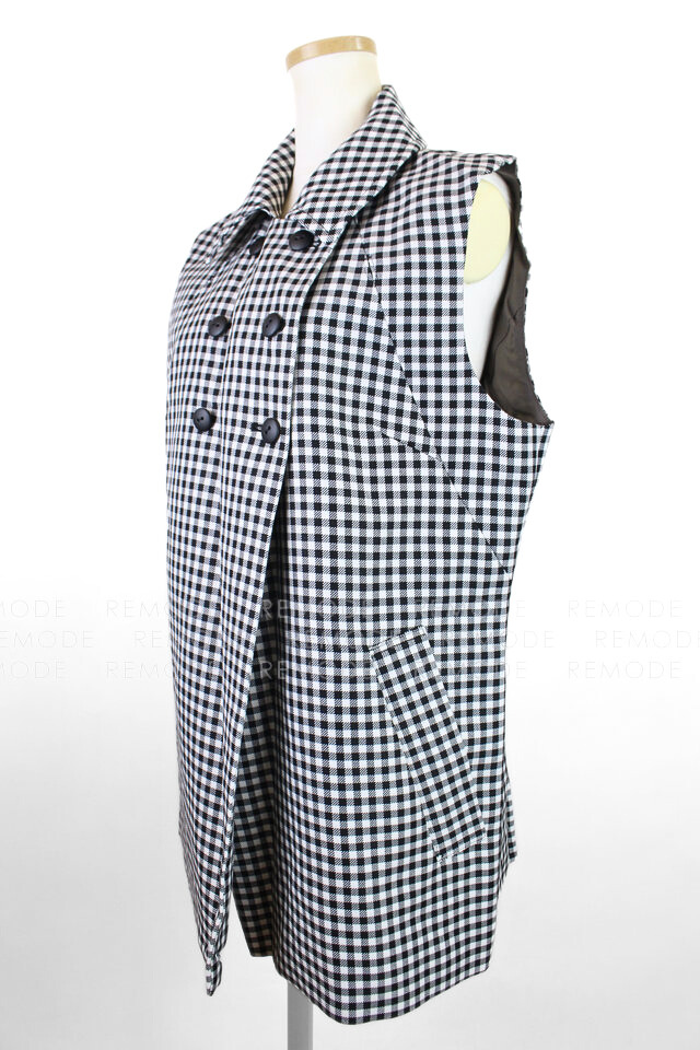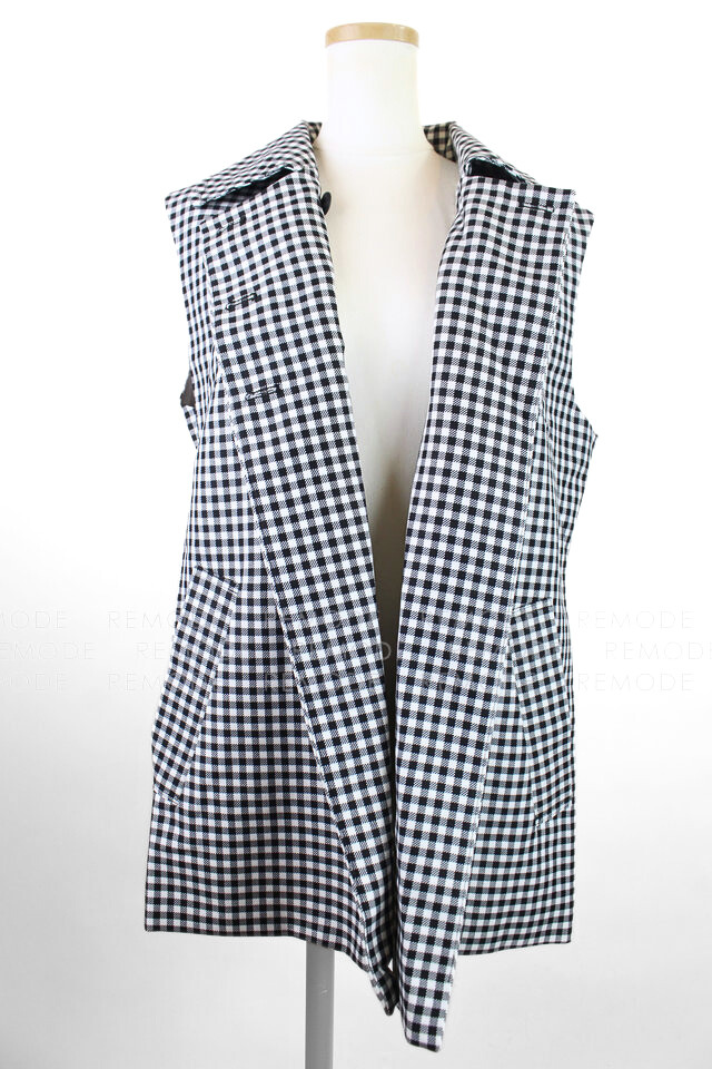 - クラシカルなギンガムチェックが目を惹くケープジャケット。ウールライクな暖かみのある素材で、緩やかな肌ざわが魅力。ネック周りの隠しボタンでケープ部分を着脱可能で、ダブル仕立てのジレとしても楽しめます。黒のメタルボタンや大きめポケットなど、モード感のあるデザインが普段のコーデに華やかさを添える一着です。