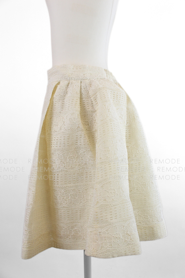 - 繊細なフラワーレースが広がり、華やかなフレアシルエットのボリュームスカート。 ナチュラルなアイボリーカラーが上品で、レースの透け感が春夏スタイルを軽やかに彩ります。 ウエストすっきり、ふんわりとしたシルエットで女性らしさをアピールするアイテムです。