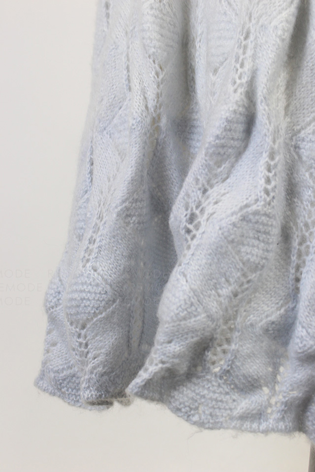 - ふんわりとしたモヘア糸仕立てのニットキャミドレスと、プチハイネックのリブニットトップスを重ねたセットアップ。Aラインのキャミドレスはウエストでメリハリをつけつつ、裾はエアリーに広がる女性らしさたっぷり。クロ編みやグラデーション使いで繊細な抜け感も演出。袖は2way仕様でアームウォーマーにも、単体使いもできる着回し力とリラックス感が魅力です。
