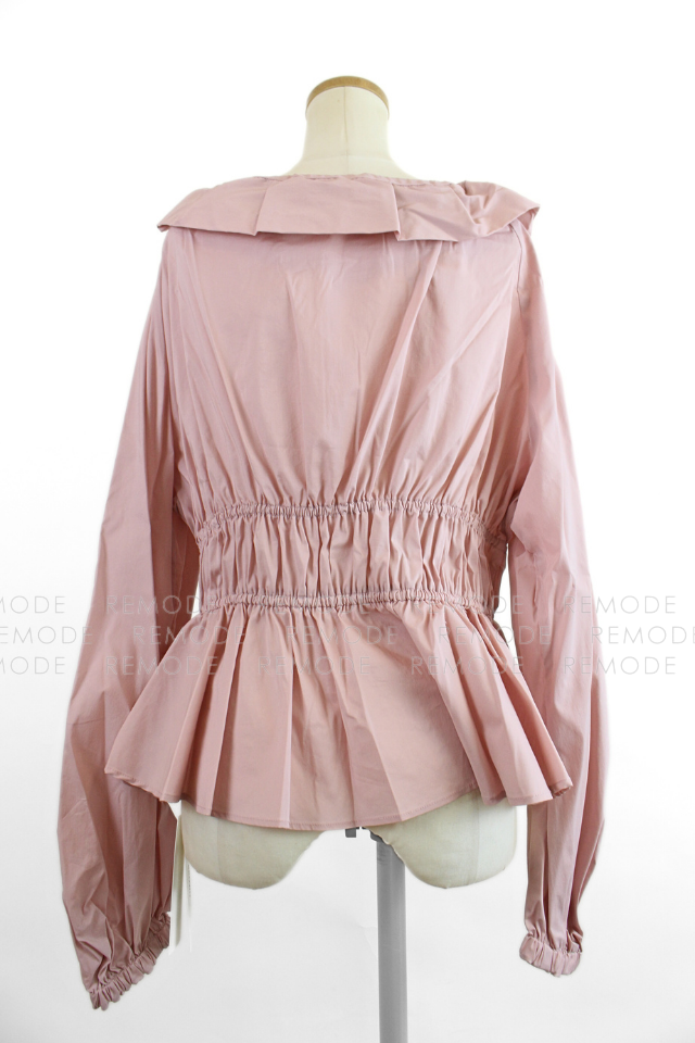 - くしゅっとしたギャザー入り襟元と長さ調節可能なリボンがポイントのフリルブラウス。ウエストを絞ったペプラムシルエットが女性らしさをそぎ、パンツやデニム合わせバレエでコアな旬スタイルが完成。