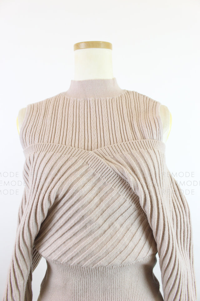- オフショルダーニットを重ねたようなドッキングで目を引くデザインのリブニットトップス。 ウエストは締め付け感のあるリブ編みで、コンパクトな丈感がすっきり見えを叶えます。 さりげない肌見せ演出で女性らしさをプラス。 ハイウエストボトムとの相性抜群で、スタイリングのポイントにおすすめです。 表情豊かなリブ素材を使い、履き心地も抜群です。
