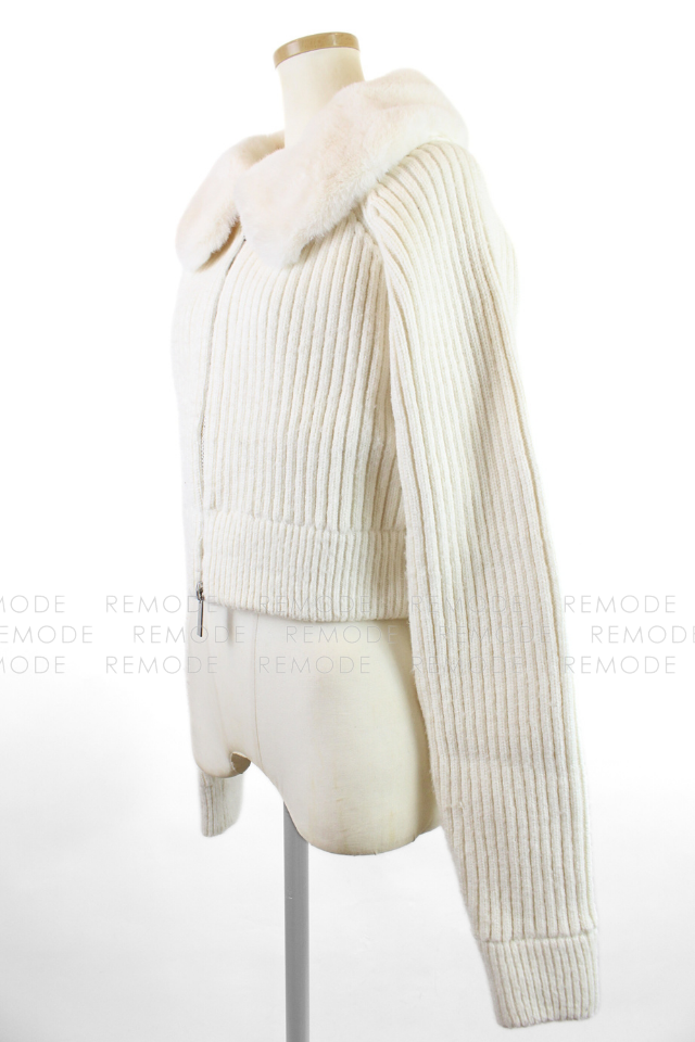 ZARA|ファーカラーリブニットジップアップカーディガン|小沼瑞季