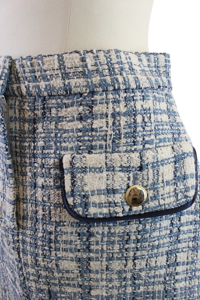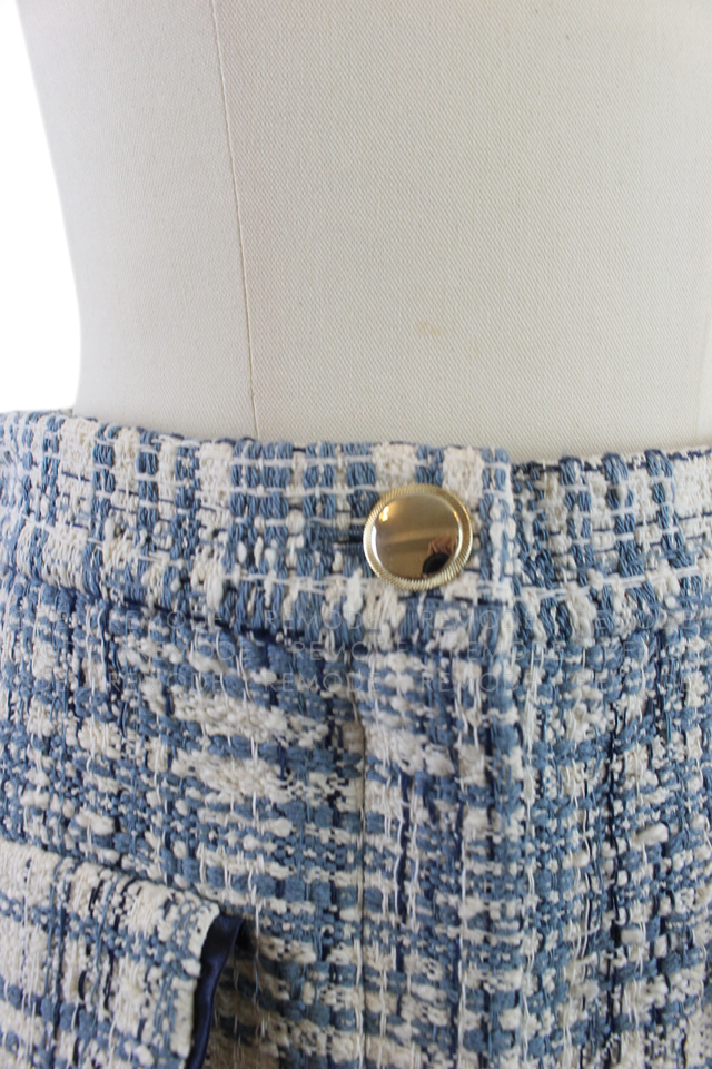 - ツイード素材とゴールドボタンが上品に映える、エレガントなプレッピースカート。美しい発色のインポート生地を使用し、華やかさと落ち着きを兼ね備えた一枚に仕上げました。ハイウエスト仕様とウエストベルトデザインが自然なスタイルアップを叶え、フラップディテールが程よいアクセントに。Aラインシルエットで脚をすっきりと見せ、ほどよい厚みのあるツイード素材が上質感と耐久性を両立します。クラシカルで長く愛用できるスカートです。