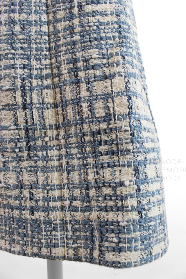 美しい発色のインポートツイードを使用し、フィット&フレアのシルエットで女性らしいラインを演出。