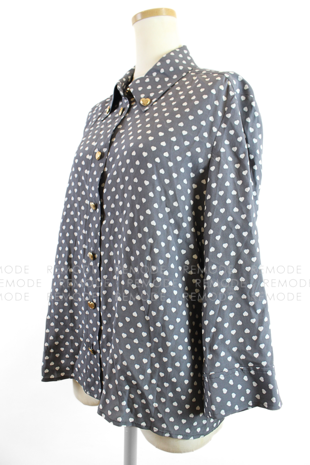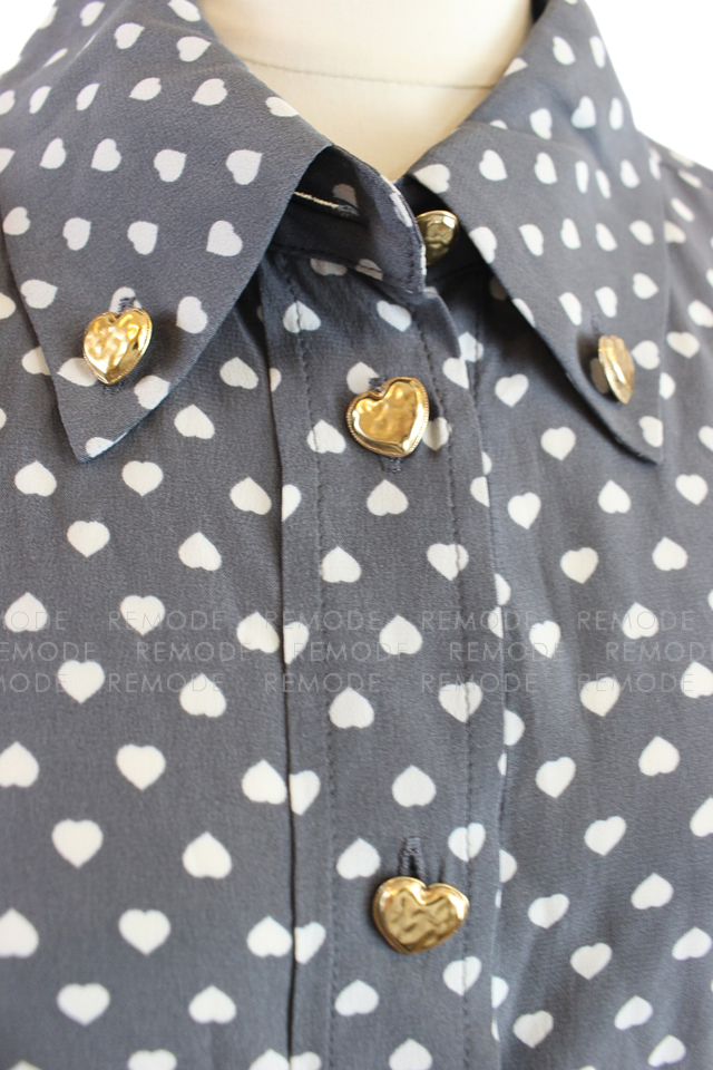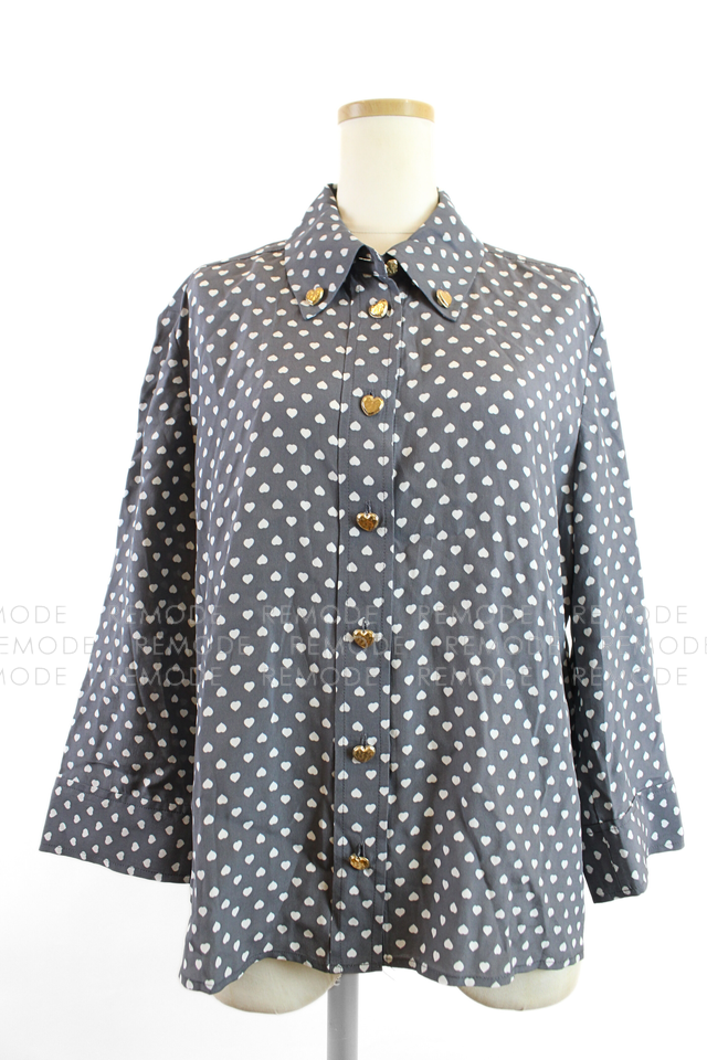 TARA JARMON|CHARLOT grey poplin shirt with white hearts ハート柄グレーシャツ|AYAKO