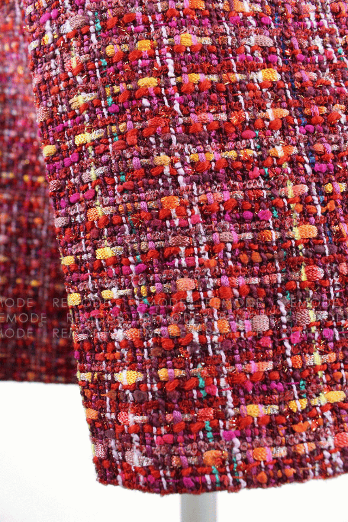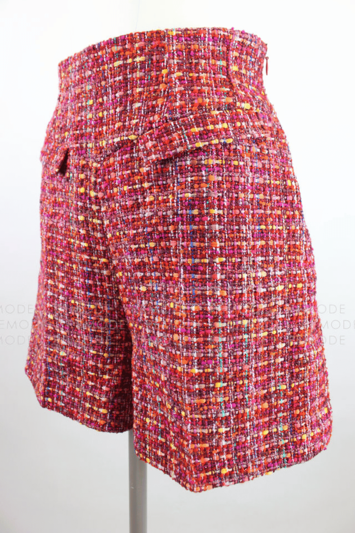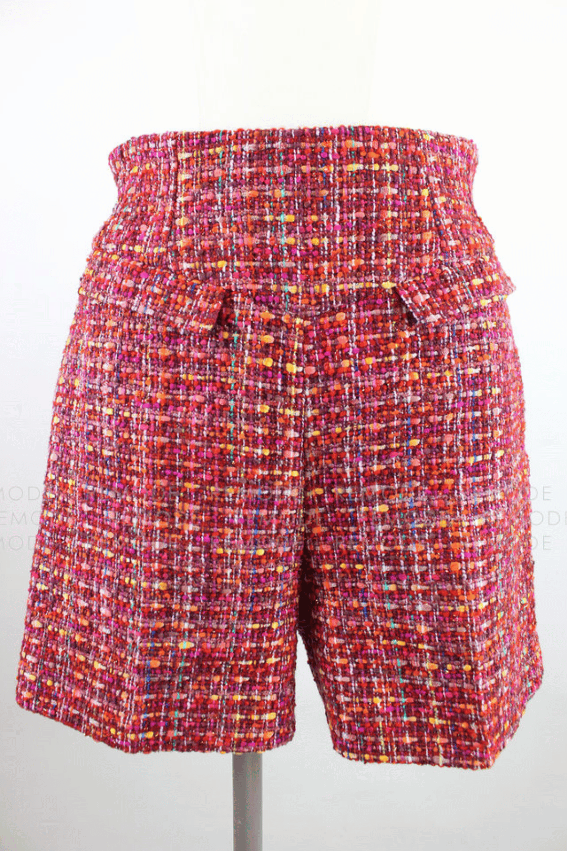 - 鮮やかなレッドが印象的な、イタリア・カンポーレ社のファンシーツイードを使用したキュロット。ピンクやイエロー、ラメ糸を織り込んだ奥行きのある表情が、遠目にも美しく映える上質素材です。膝上の程よい丈感で大人にも取り入れやすく、ベルトレスのハイウエスト仕様がすっきりとした印象に。ヒップ上のフラップディテールがアクセントとなり、自然なスタイルアップを叶えます。同素材のジレとのセットアップや、レースブラウス×ロングブーツのコーディネートもおすすめです。