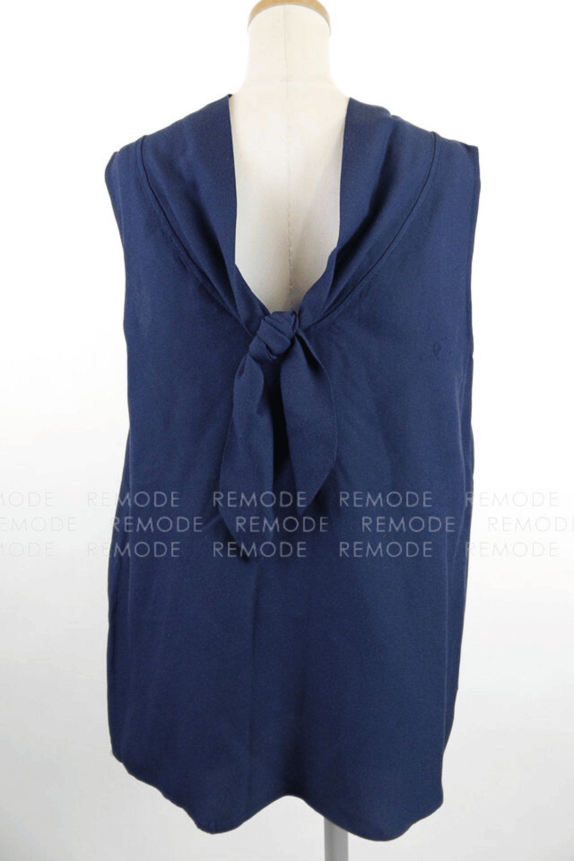 - とろみのあるネイビー生地が上品なTARA JARMONのノースリーブブラウス。フロントはシンプル、バックスタイルには大きなリボンディテールをあしらい、後ろ姿まで女性らしく演出します。ヒップにかかる長め丈で体型カバー力もあり、細身パンツやタイトスカートと合わせるだけで洗練されたコーデが完成する一枚です。