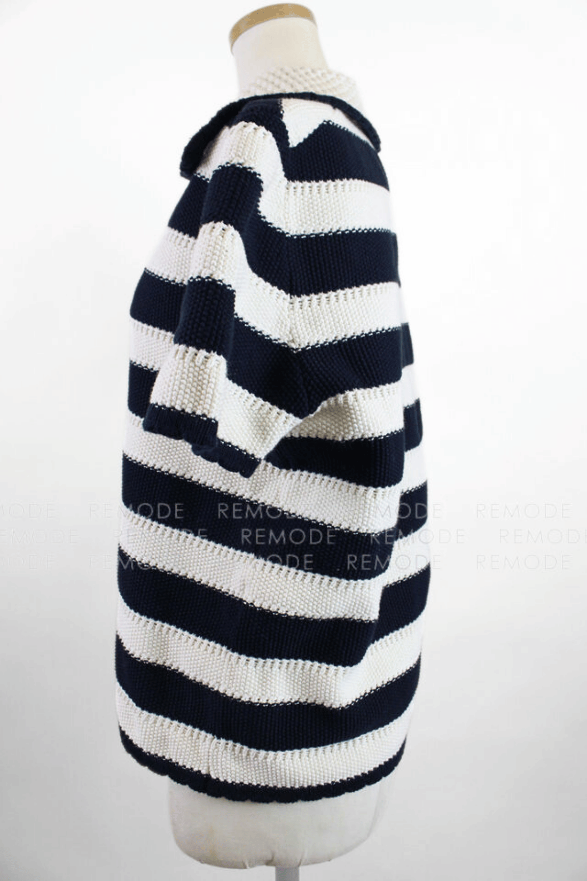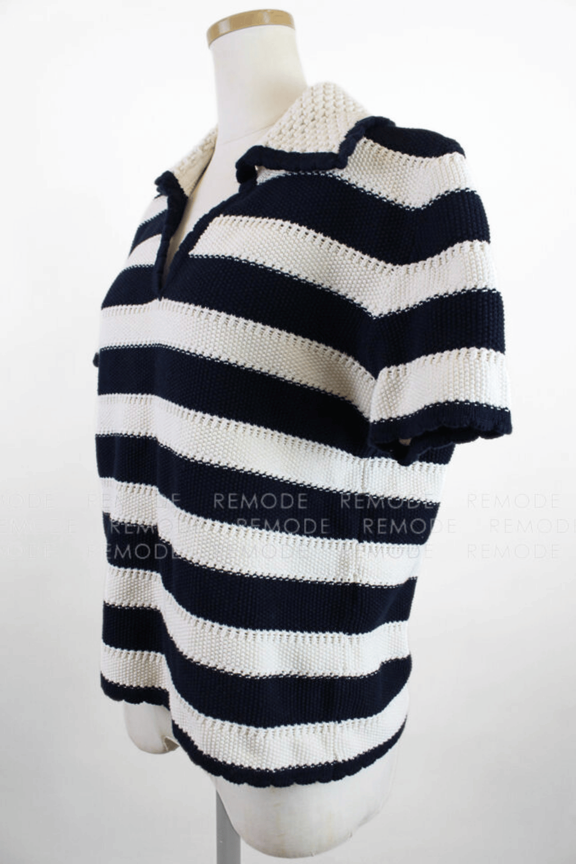 - エレガンスとミニマルさを兼ね備えた、夏映えするボーダーニット「Nickle」。ショートスリーブと程よいピッチのボーダーがグラフィカルな印象を添えます。ラペル付きのVネックとストレートシルエットで、すっきりとした大人の佇まいに。メッシュ調の編み地や凹凸感のある表情が軽やかさを演出し、襟や裾、袖口のスカラップ風デザインがさりげないフェミニンさをプラス。シルケット加工を施したコットン素材で、ほのかな光沢とさらりとした着心地を実現しました。デニムからフレアスカートまで幅広く好相性の一枚です。