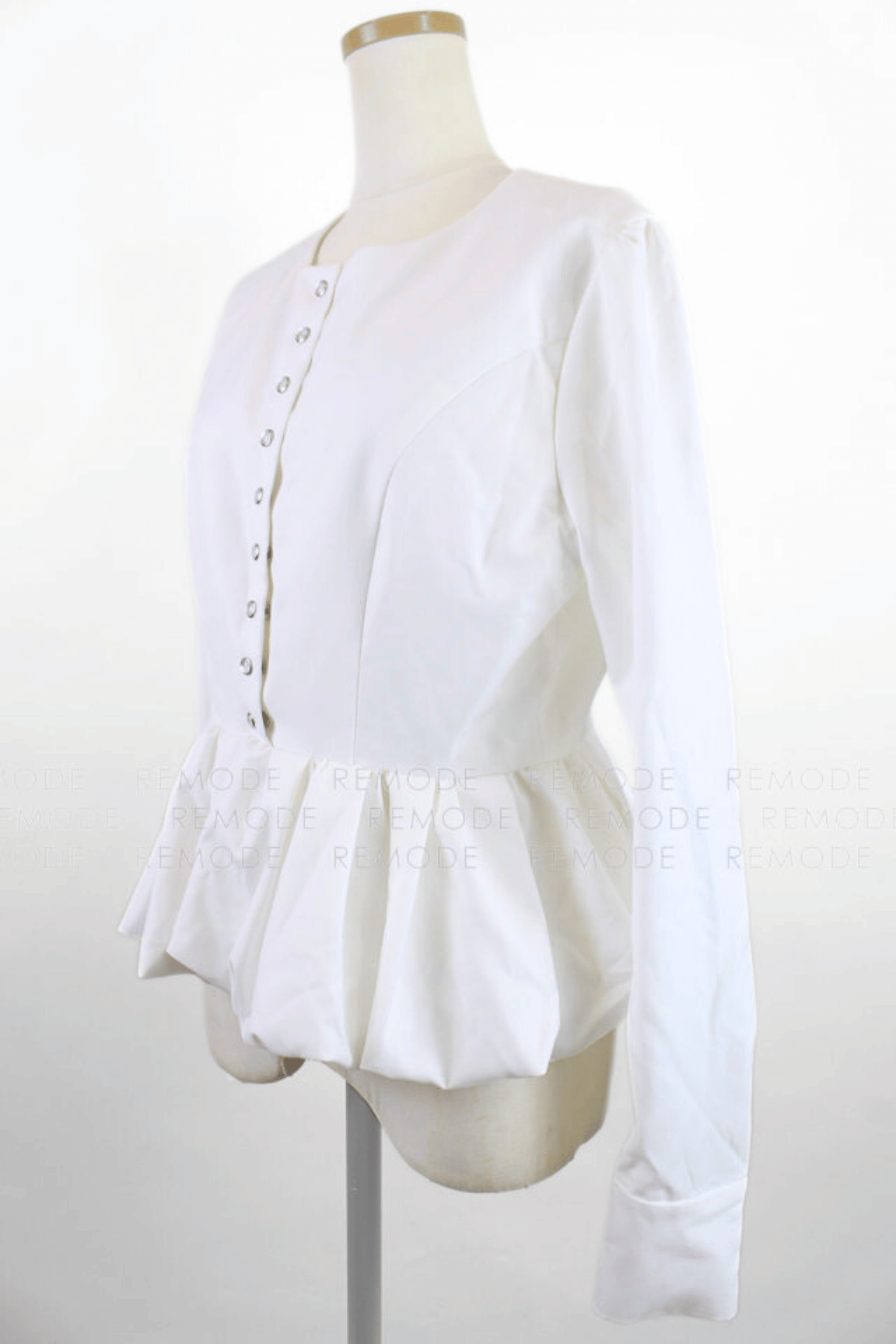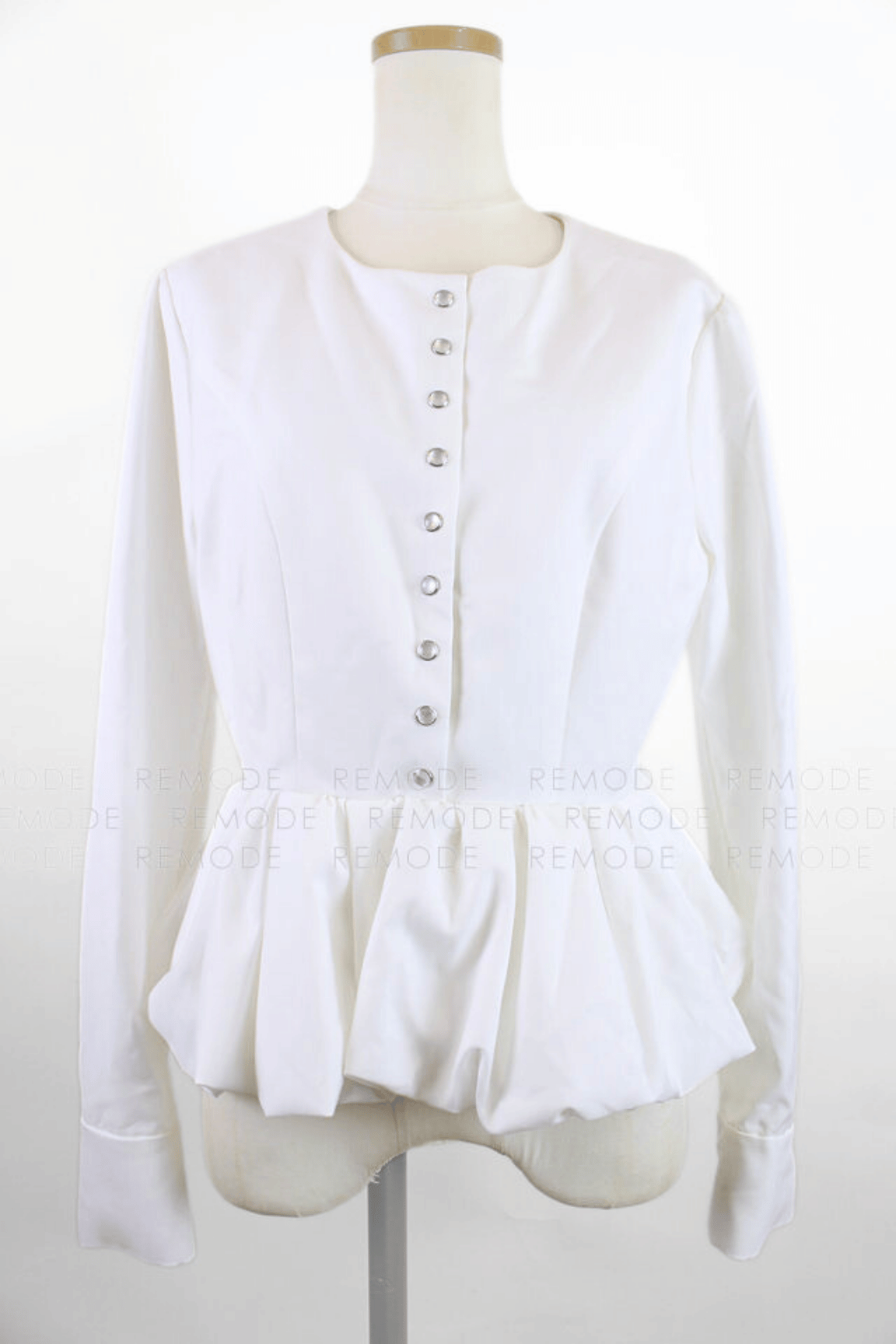 - 立体的なフォルムが映える、上品なバルーンペプラムトップス。ふんわりと広がるシルエットがウエストラインを美しく引き立て、女性らしい柔らかさをプラスします。小粒のドットボタンをあしらったデザインが、シンプルな中にさりげないアクセントを添え、洗練された印象に。スカートにもパンツにも合わせやすく、シーンを問わず活躍するタイムレスな一枚です。