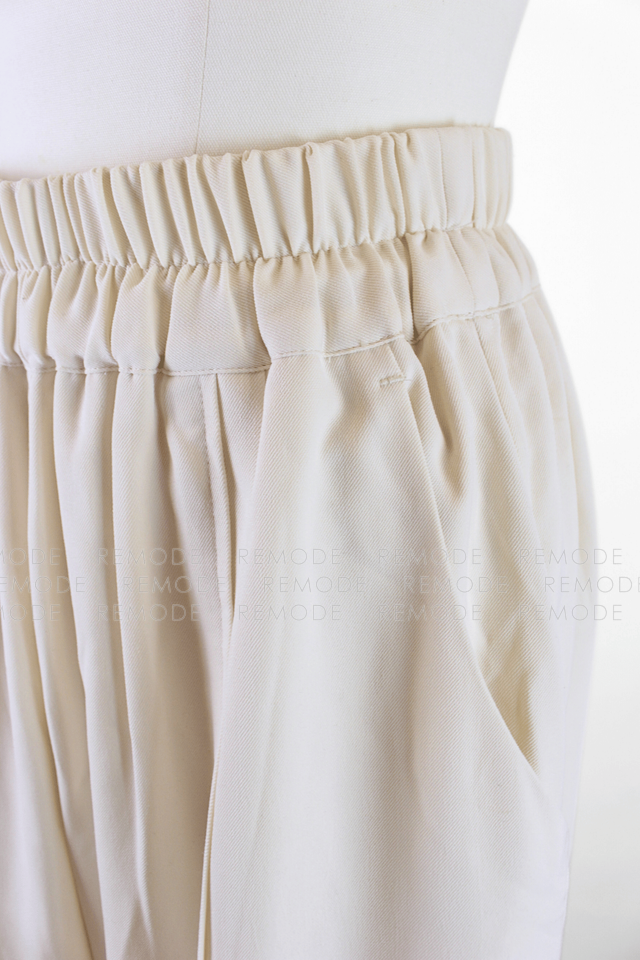 - ふんわり広がるシルエットが魅力のMIELI INVARIANTのフレアワイドパンツ。ウエストは総ゴム仕様でラクな穿き心地ながら、タック入りのデザインが腰回りをすっきり見せてくれます。柔らかなアイボリーカラーでどんなトップスとも合わせやすく、きれいめにもカジュアルにも活躍する1本です。