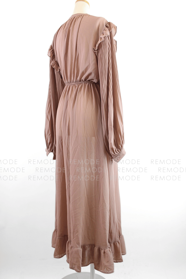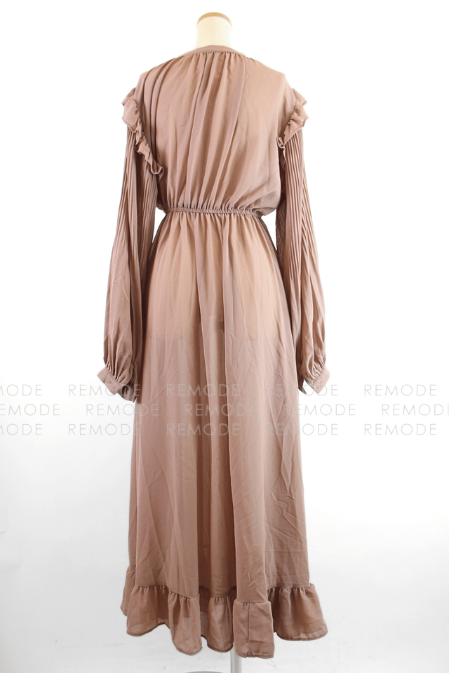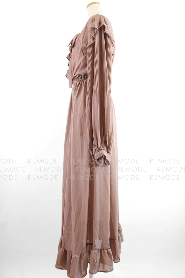 Garden by Valmuer|フリルネックプリーツスリーブロングワンピース|CHIHA