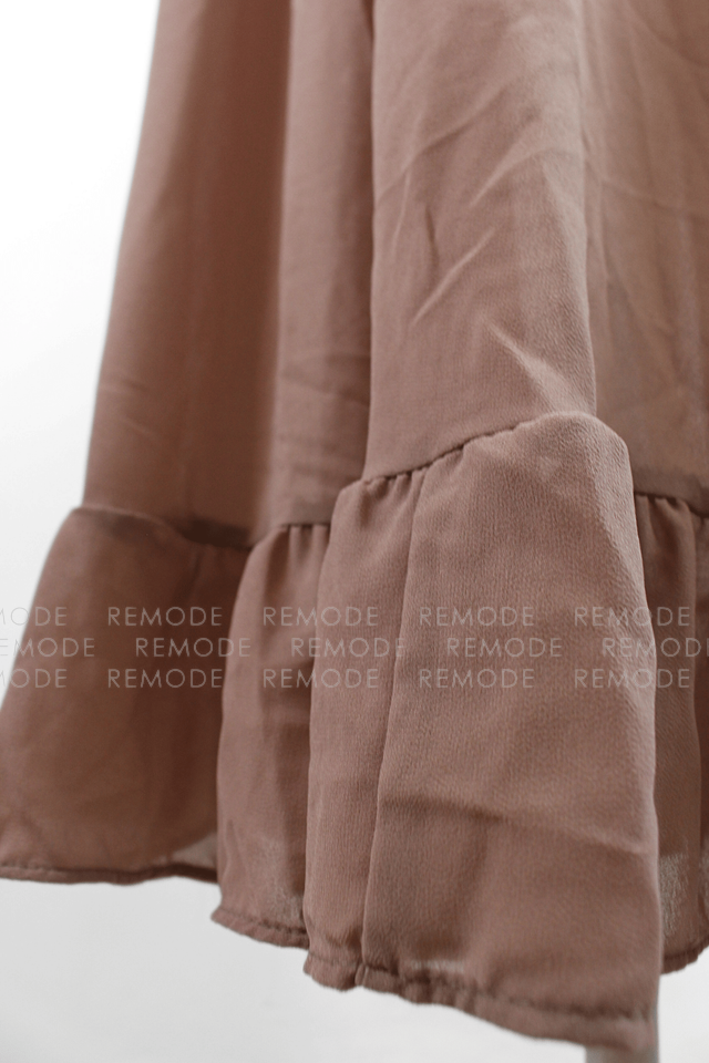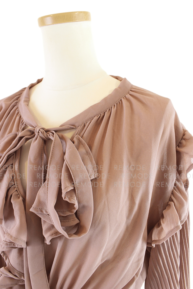 - フロントにあしらわれたフリルとリボンタイがクラシカルな印象のロングワンピース。袖は細かなプリーツデザインで、動くたびにさりげなく揺れて女性らしさを演出します。ウエストゴム仕様で着心地ラクなのにスタイルアップも叶う優秀アイテム。落ち着いたモカカラーで、デイリーからお食事会まで幅広く活躍する1着です。
