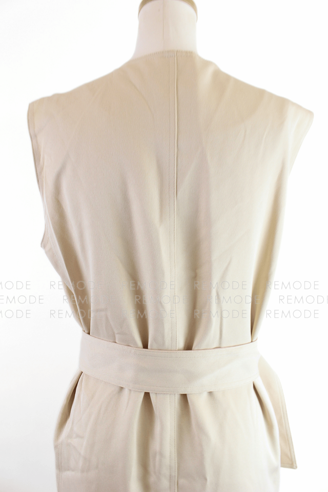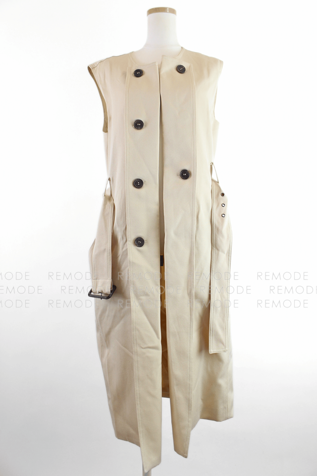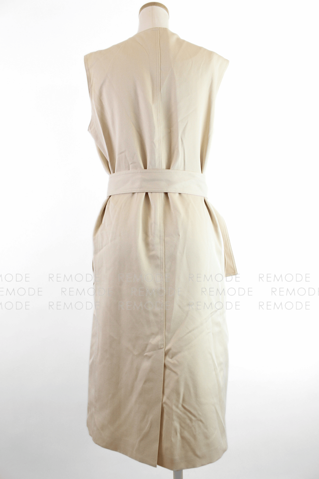 - トレンチコートライクなノースリーブロングワンピース。フロントを通常通り閉じればきちんと感のあるトレンチ風に、身頃を折り込んで着用すれば左右非対称ボタンのモードなシルエットも楽しめます。インナー次第でロングシーズン活躍し、1枚でコーデの主役になるアイテムです。