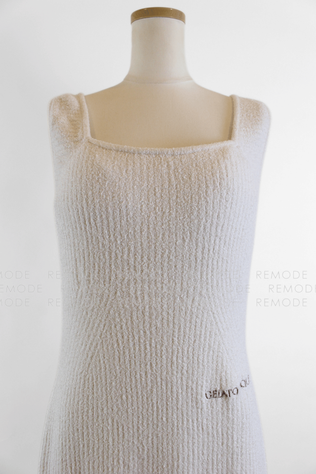 - gelato piqueのふわもこニットロングワンピース。やわらかな肌触りで、身体を包み込むようなシルエットがリラックスタイムにぴったりです。シンプルなアイボリーカラーで大人かわいい雰囲気に。一枚でさらっと着ても、カーディガンやレギンスを重ねても楽しめるルームウェアです。