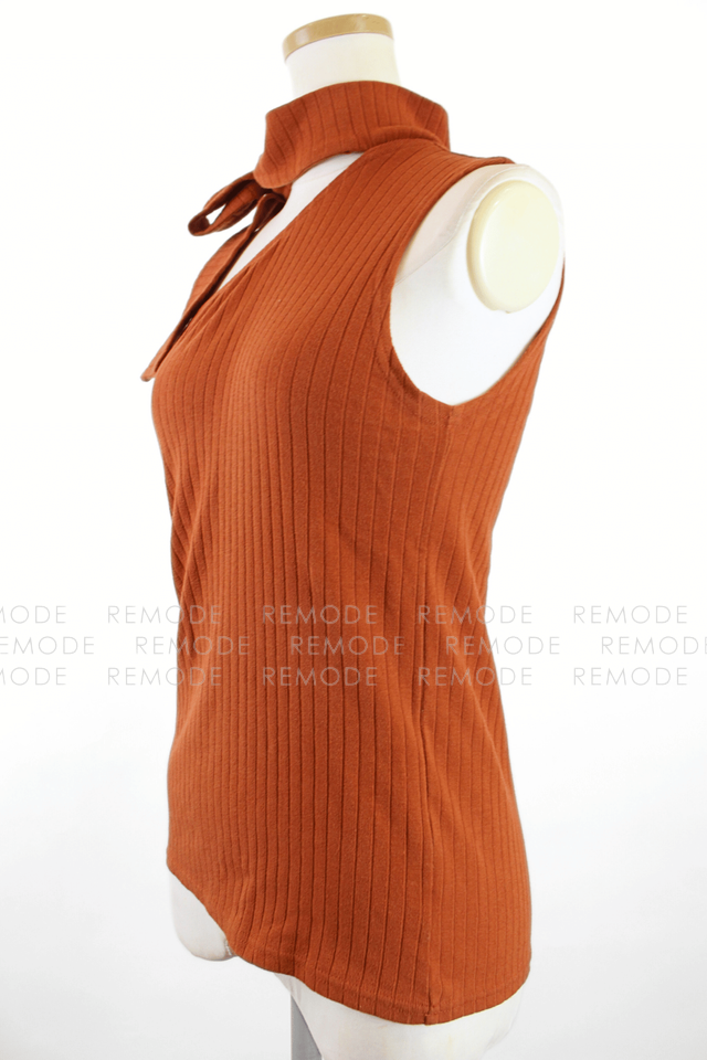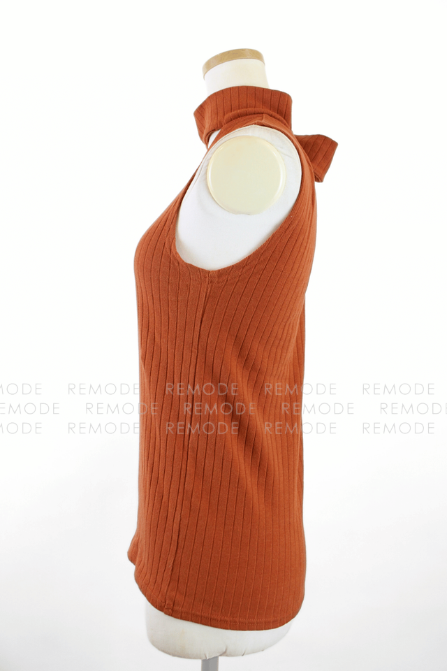 Estella.K|ワンショルダーリボンランダムリブニットトップス(テラコッタ)|CHIHA