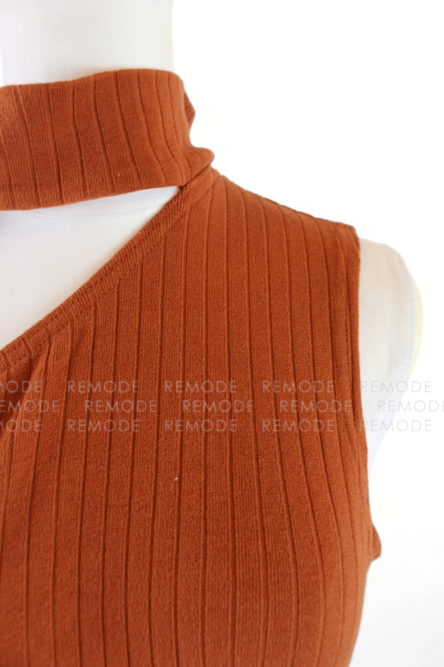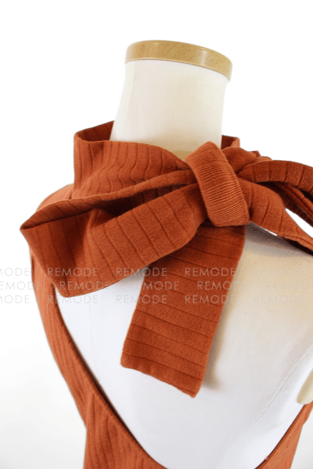 - 首元に巻き付けたリボンと、アシンメトリーなワンショルダーデザインが目を引くEstella.Kのリブニットトップス。身体に優しくフィットするランダムリブが縦ラインを強調し、すっきりとしたシルエットに。こっくりとしたテラコッタカラーでデニムにもきれいめボトムにも相性◎。一枚で主役になる、大人フェミニンなニットです。