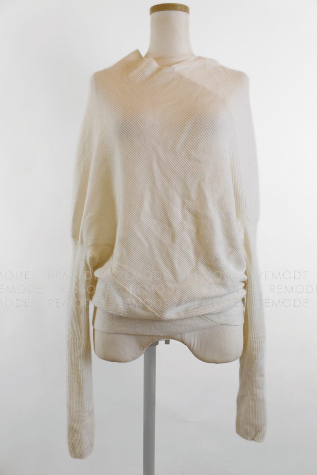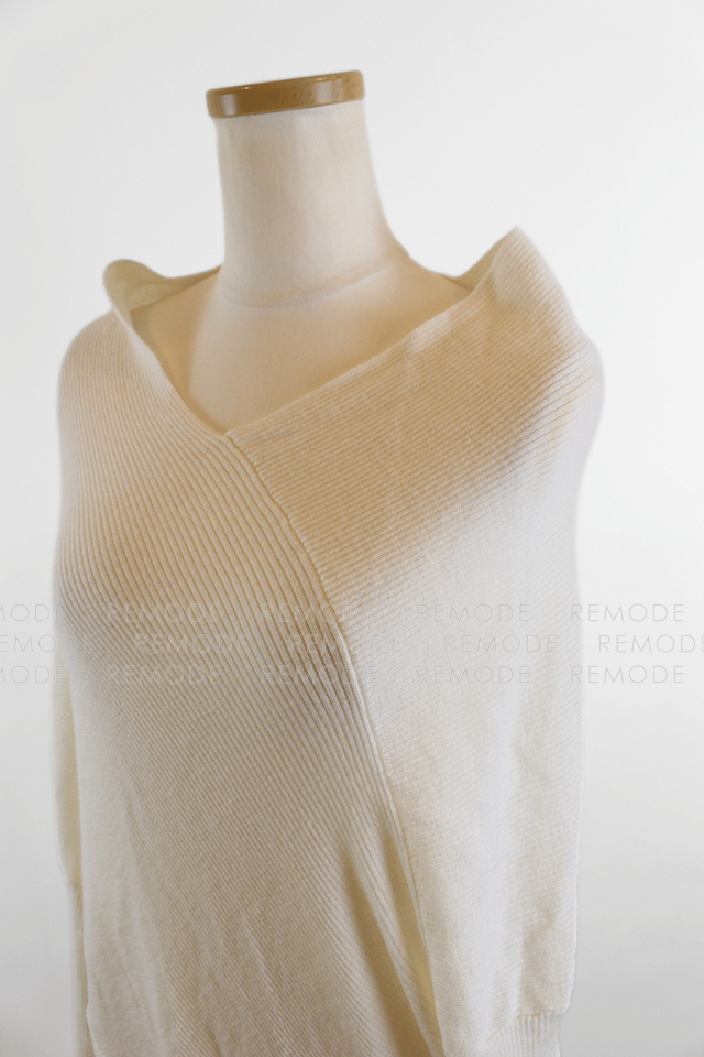 - P.A.R.O.S.H.のLEILA25ウール100%変形ニットプルオーバー。身頃をゆったり包み込むポンチョ風シルエットに、ひじ下だけ細く伸びるスリーブがモードな一枚。柔らかなアイボリーカラーと斜めに入るドレープが体のラインをさりげなくカバーしつつ、こなれ感のあるスタイリングを叶えてくれます。