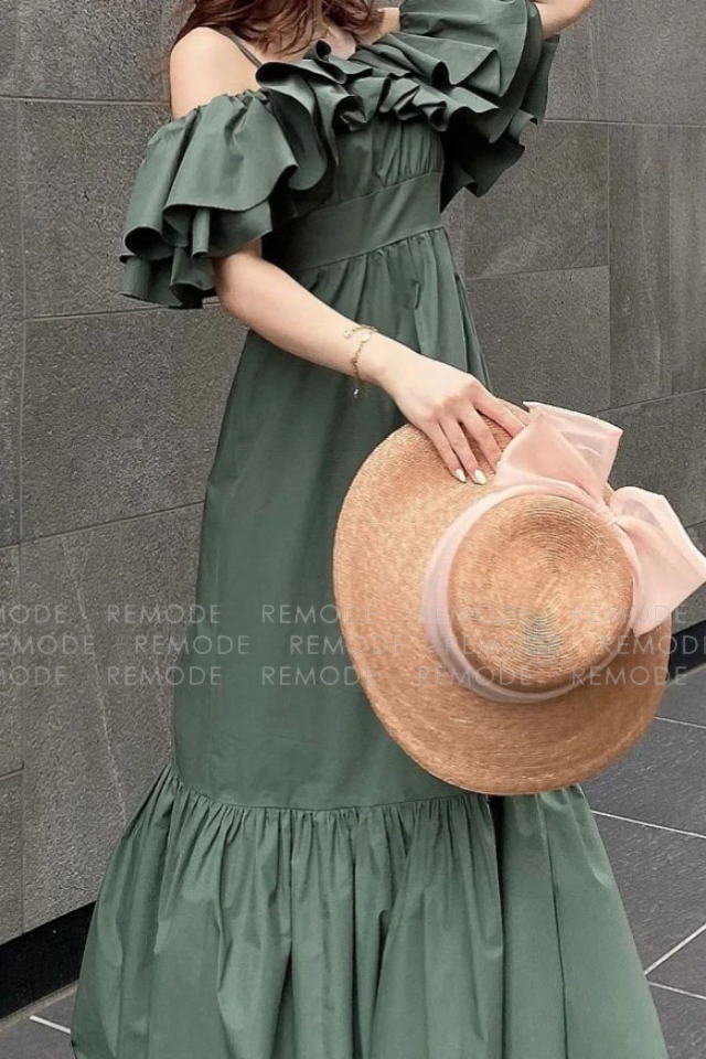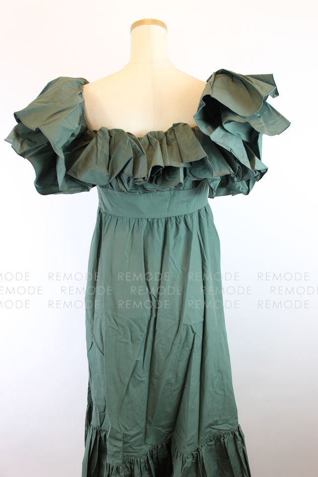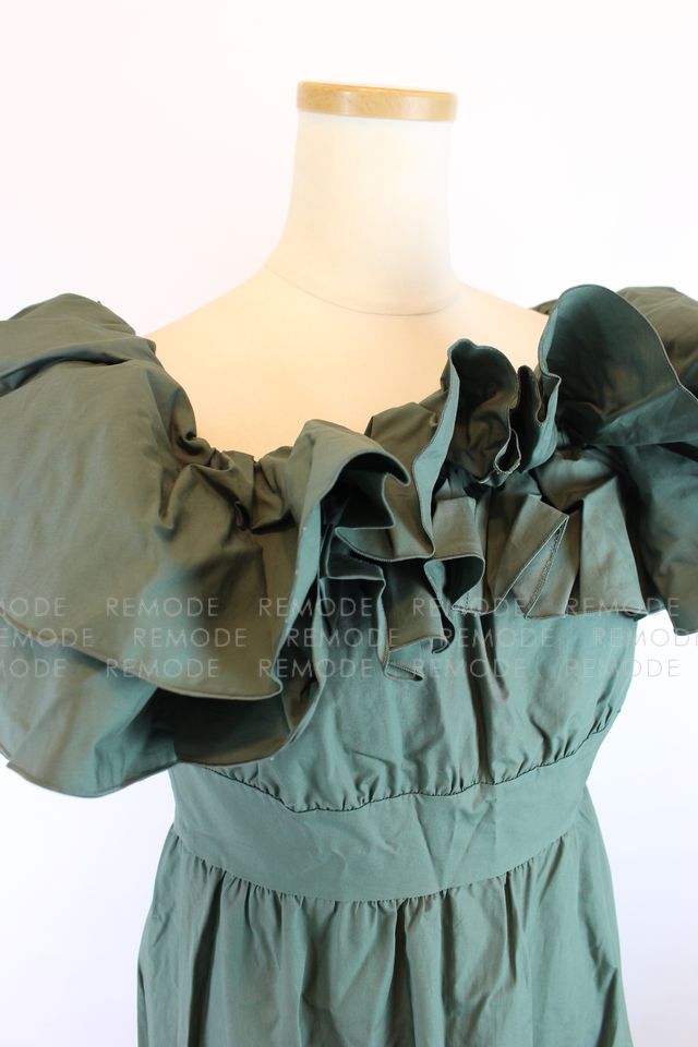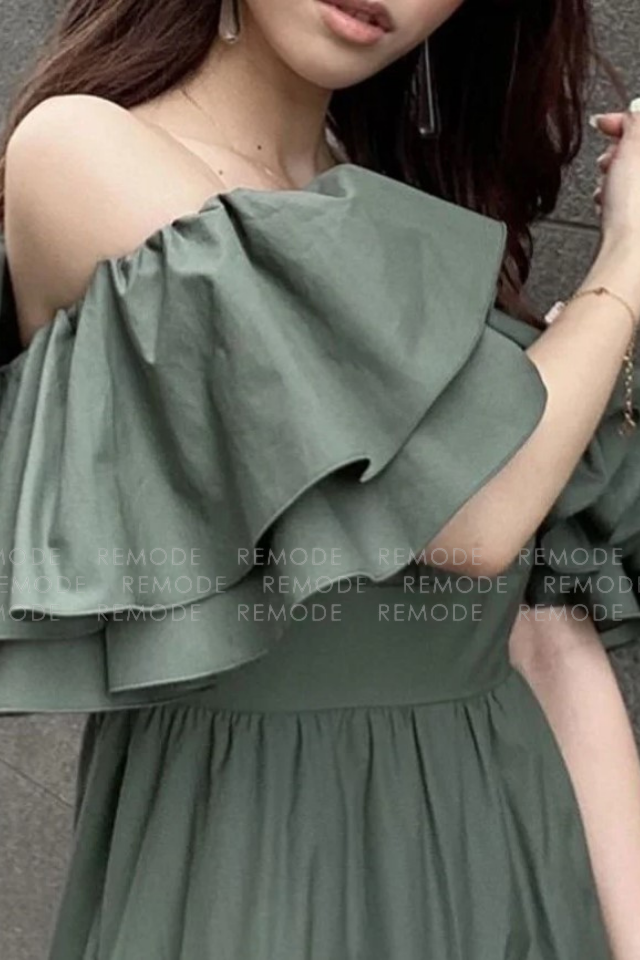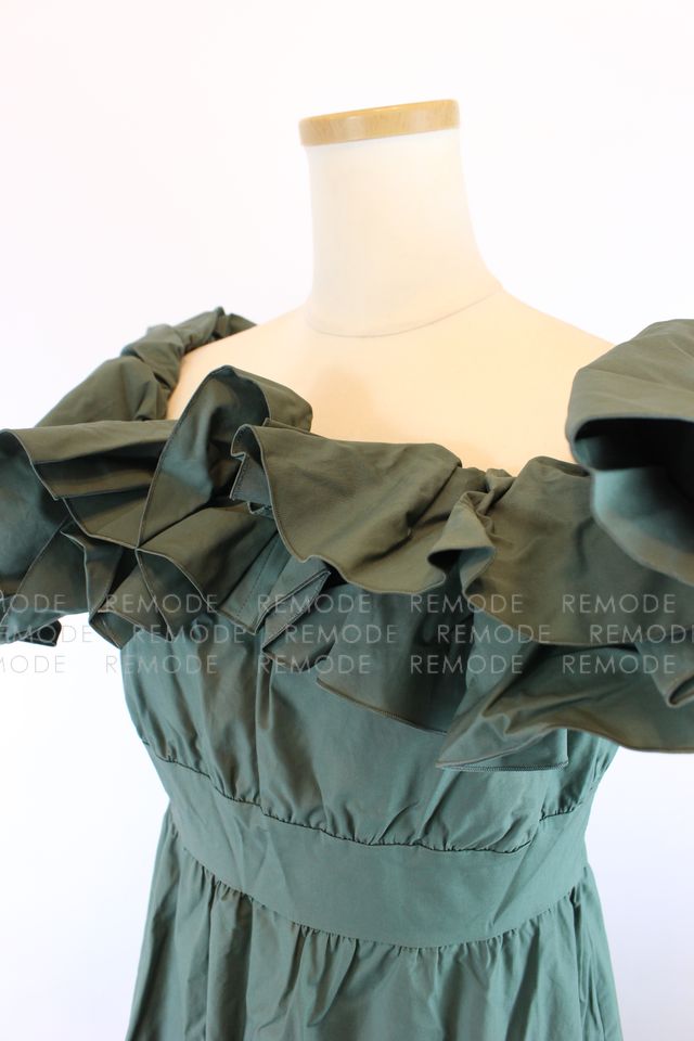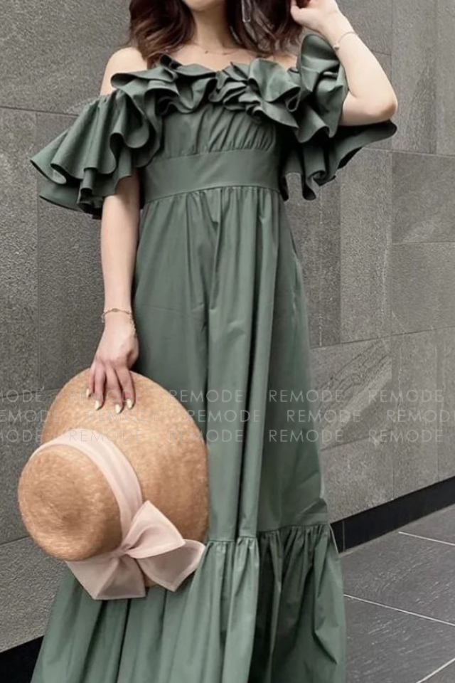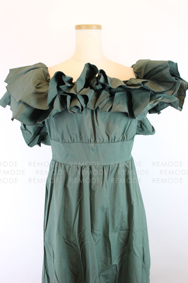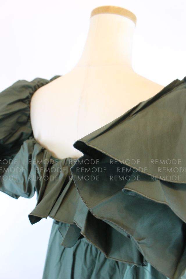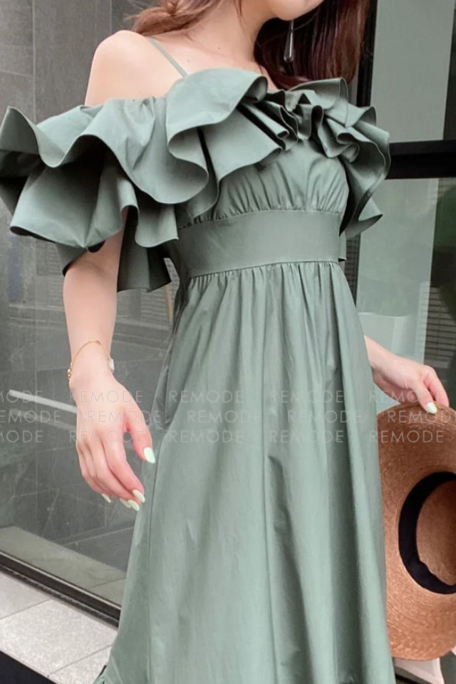- 1枚で存在感抜群。たっぷりのラッフルフリルがポイントのオフショルダーワンピース。ウエスト部分は絞り、メリハリのあるデザインの為、女性らしさを演出できます。ちょっとしたパーティなど、およばれシーンに重宝するようなワンピースです。