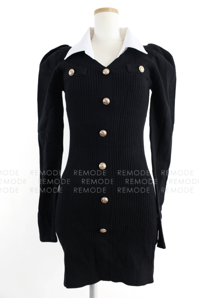 Rady|襟付きゴールドボタン リブニットワンピース|CHIHA