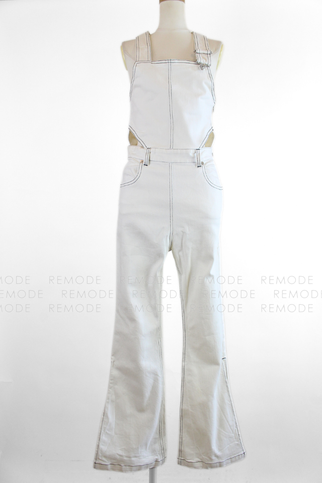 Rosarymoon|サイドカットデザイン ホワイトデニムオールインワン|小沼瑞季