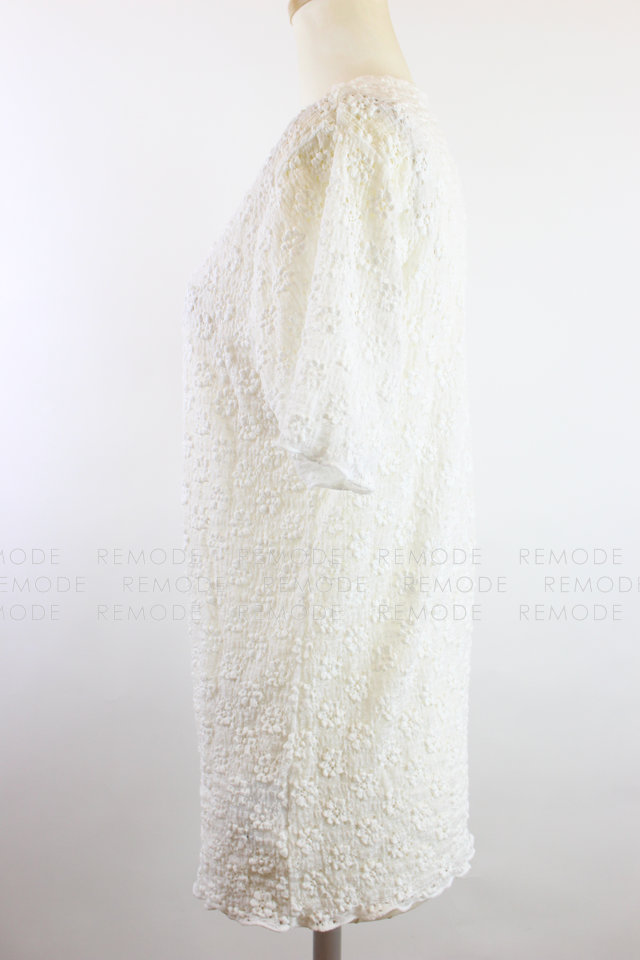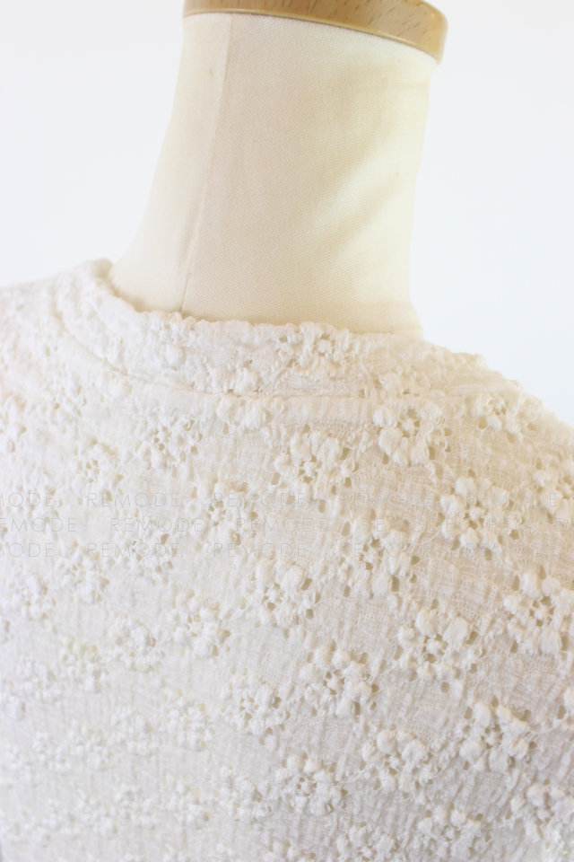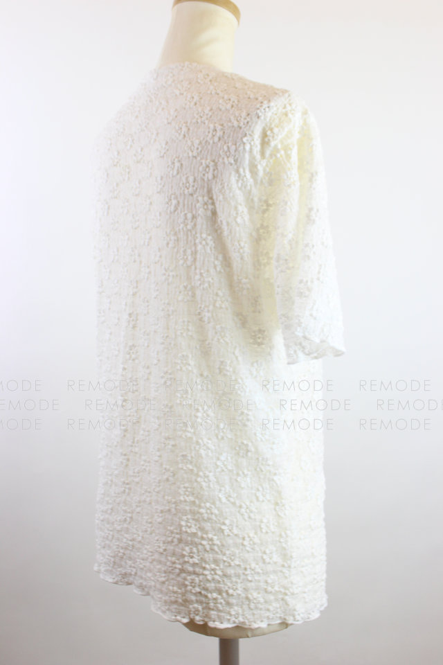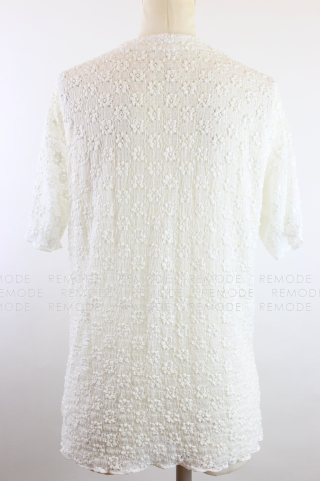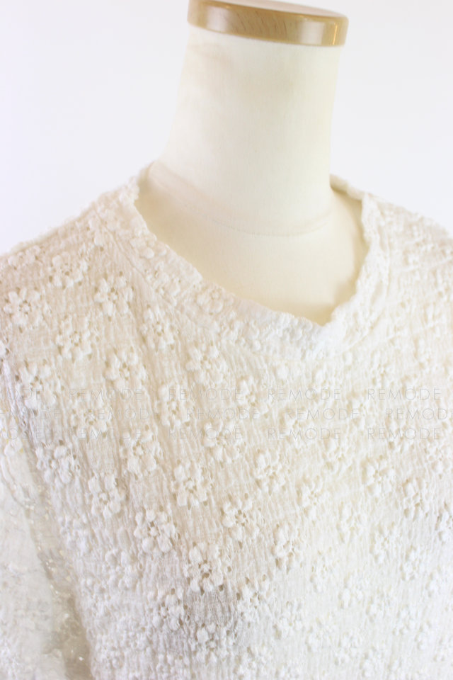 - 立体的な花モチーフのレースが上品な印象を与える半袖トップス。軽い着心地と程よいストレッチで、デイリーから特別な日にも活躍します。1枚で華やかさが際立ち、シンプルなボトムスと合わせるだけで大人可愛いスタイリングが完成。夏のワードローブにおすすめの一着です。