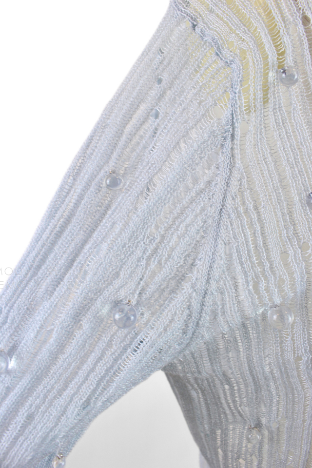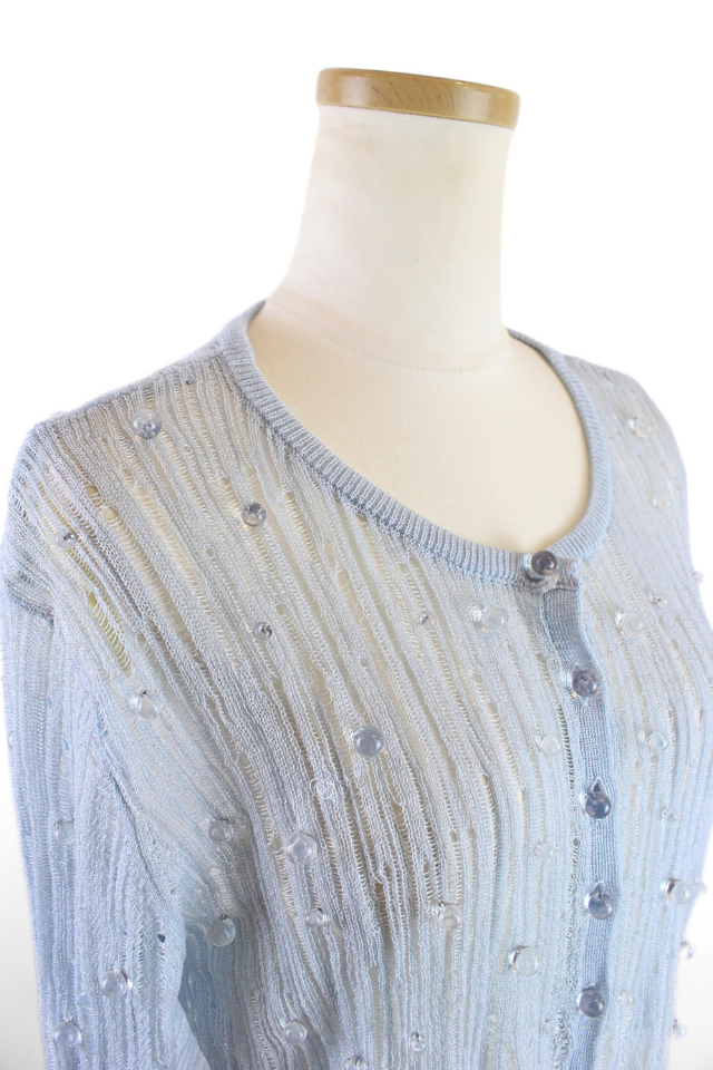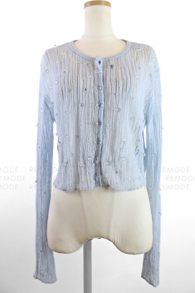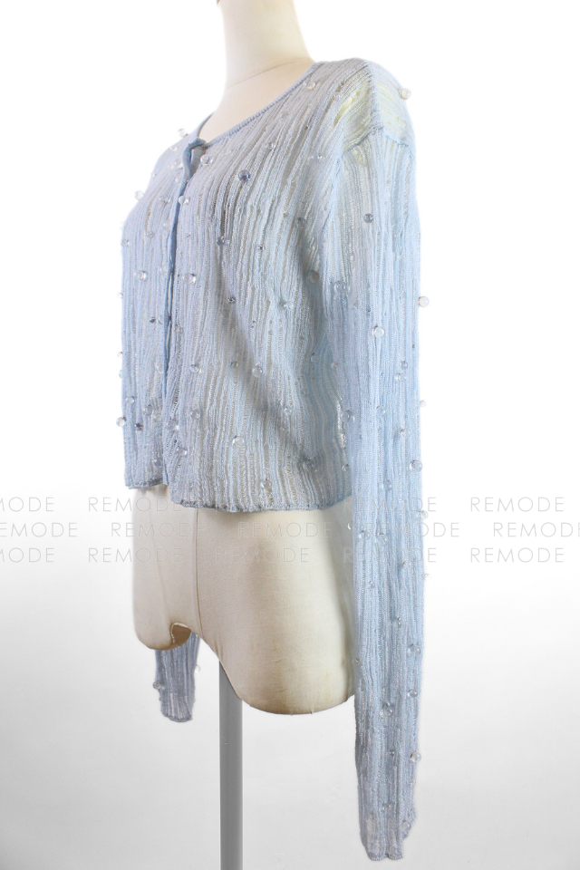 - 透明感のあるビジューを散りばめた、華やかなシアーニットカーディガン。