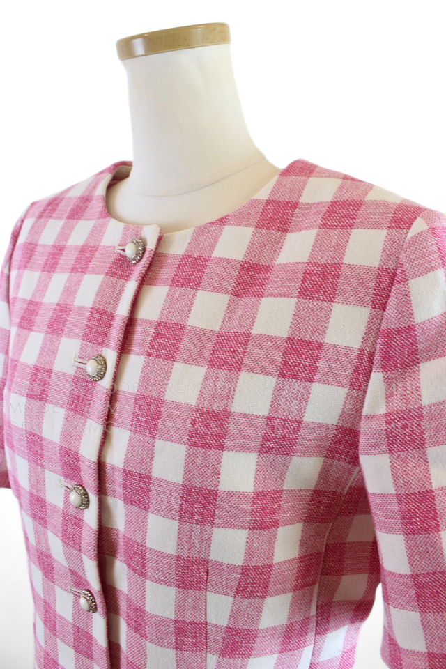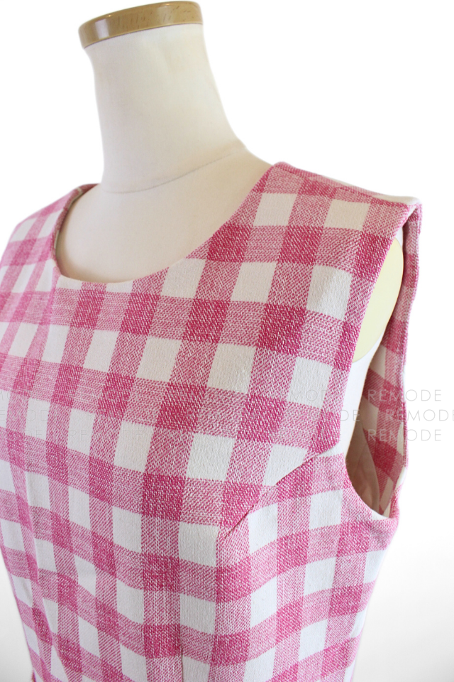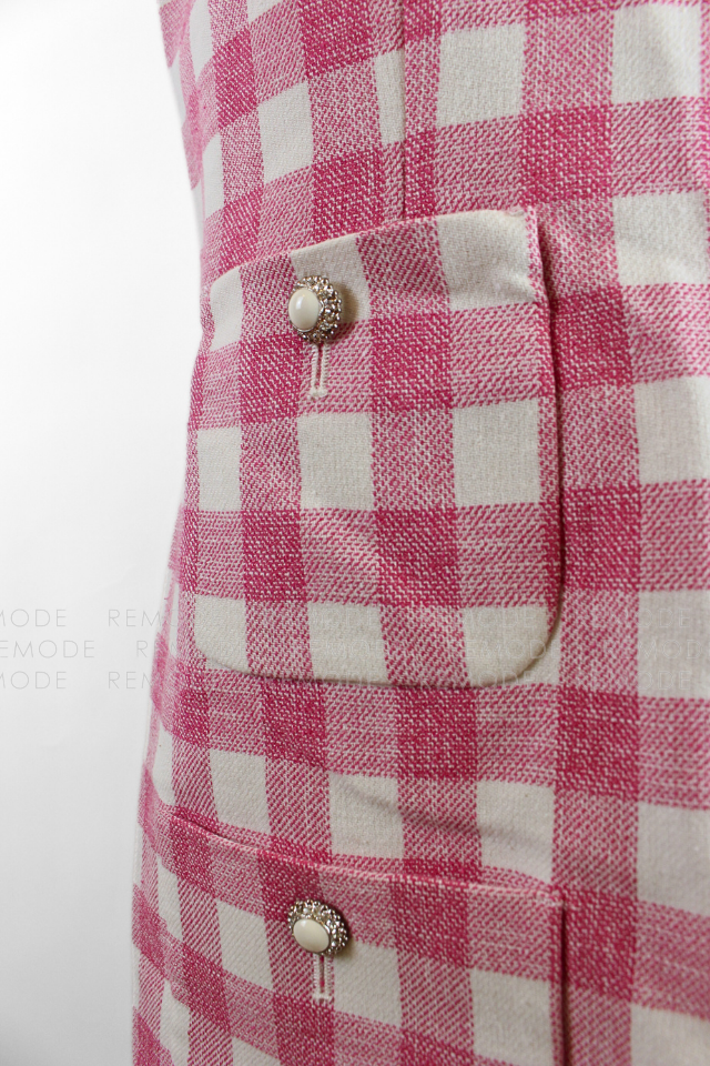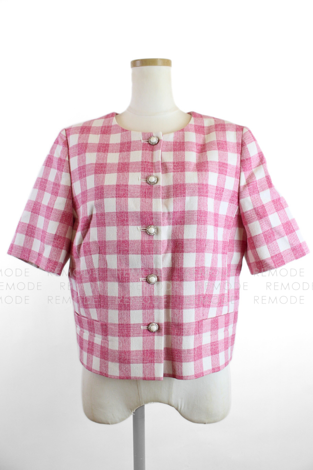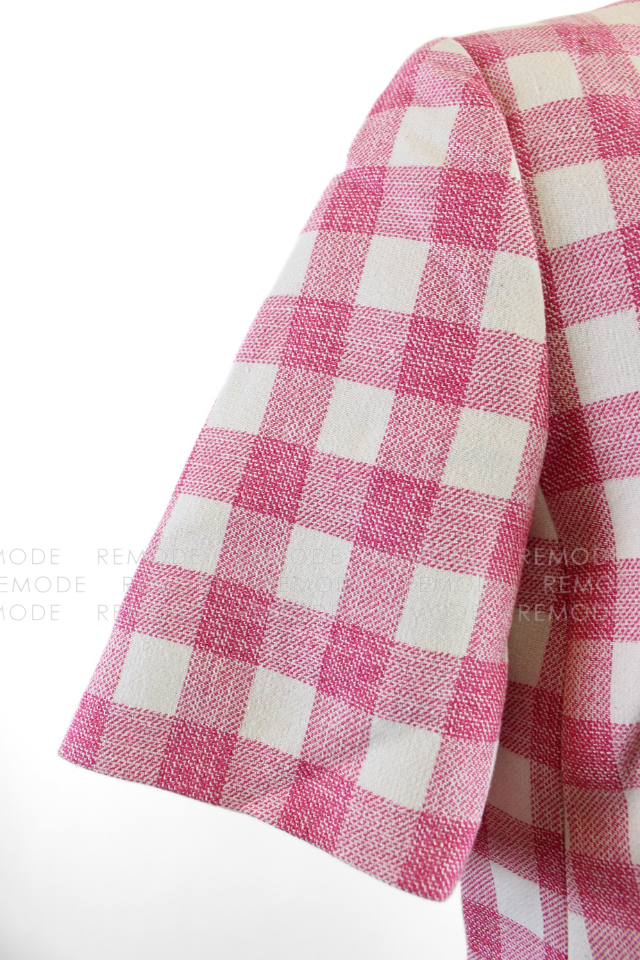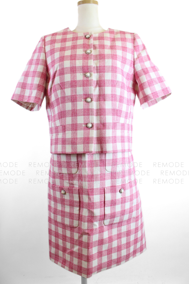 - エクリュ×キャンディピンクのギンガムチェックが目を惹く、レトロでフェミニンなセットアップ。