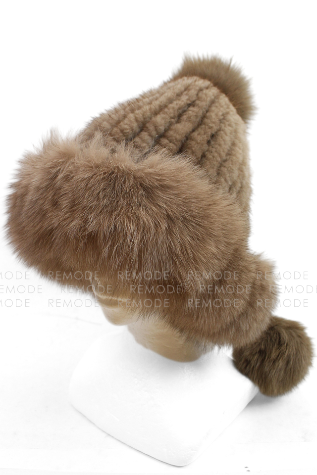 ミンクファー調ニット帽 ポンポン付き|AYAKO