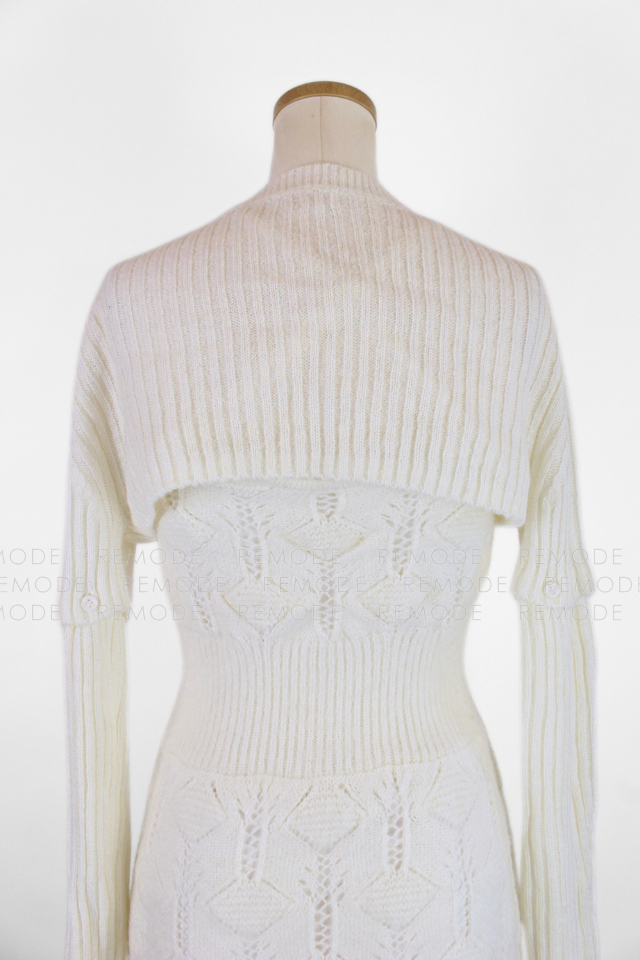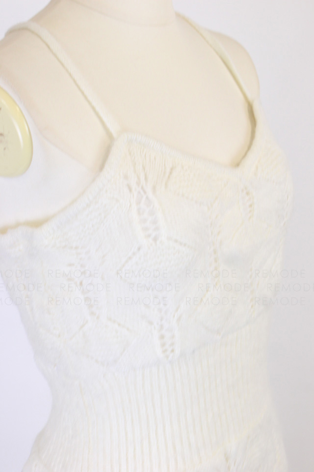 - ふんわりとしたモヘア糸仕立てのニットキャミドレスと、プチハイネックのリブニットトップスを重ねたセットアップ。Aラインのキャミドレスはウエストでメリハリをつけつつ、裾はエアリーに広がる女性らしさたっぷり。クロ編みやグラデーション使いで繊細な抜け感も演出。袖は2way仕様でアームウォーマーにも、単体使いもできる着回し力とリラックス感が魅力です。
