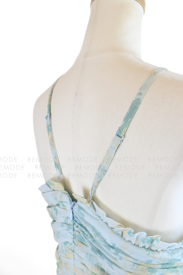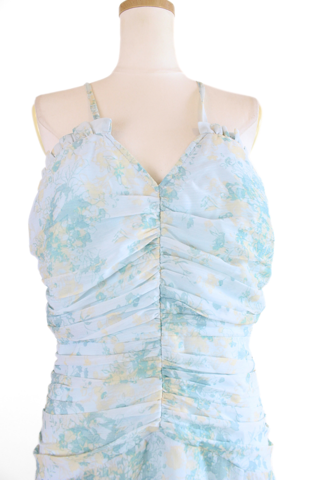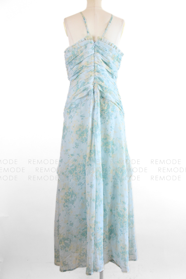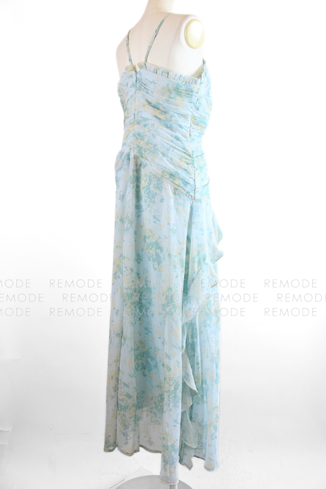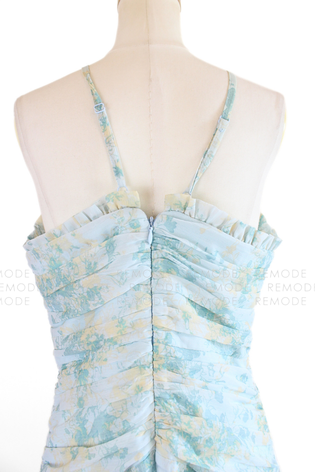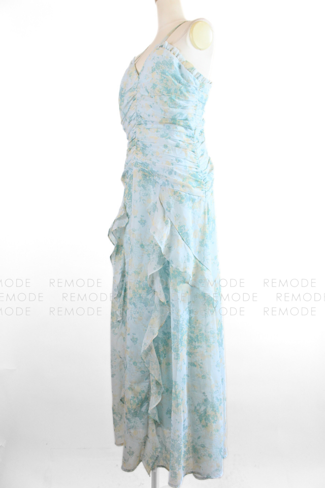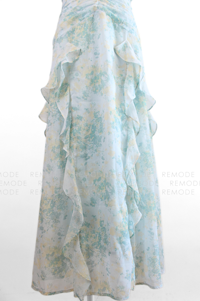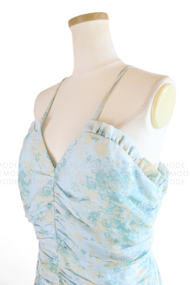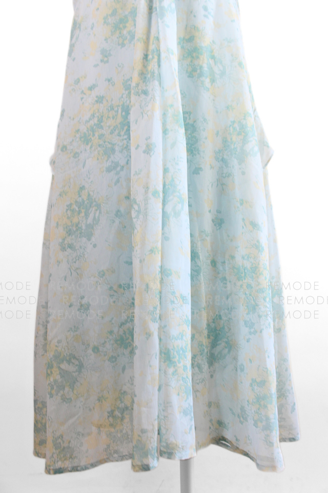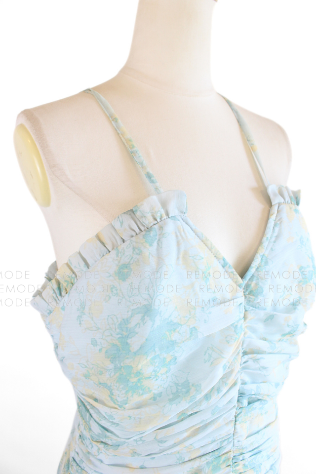 - 柔らかなシフォン素材に淡いフラワープリントを施したフリルキャミワンピース。サイドフリルとギャザーで華やかなシルエットに。涼しげで軽やか、韓国風の爽やかコーデで主役におすすめの一枚です。