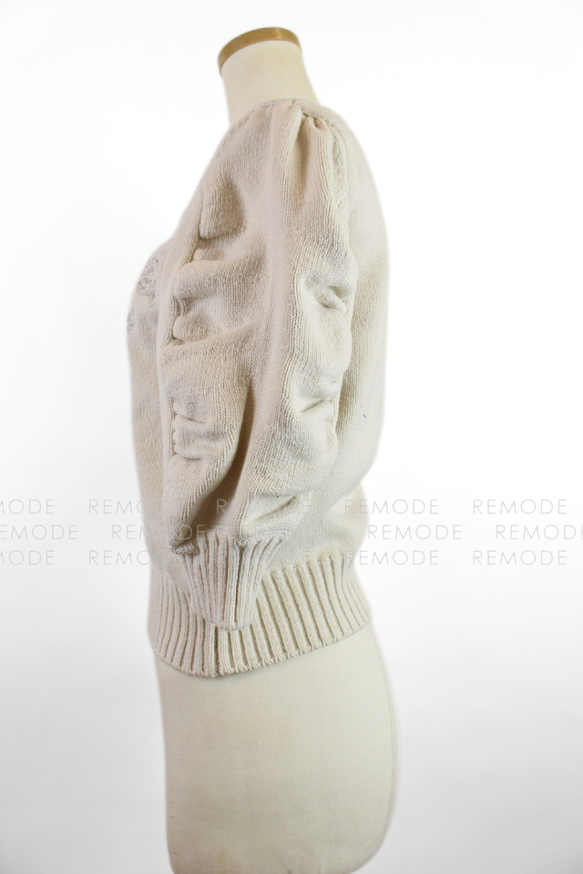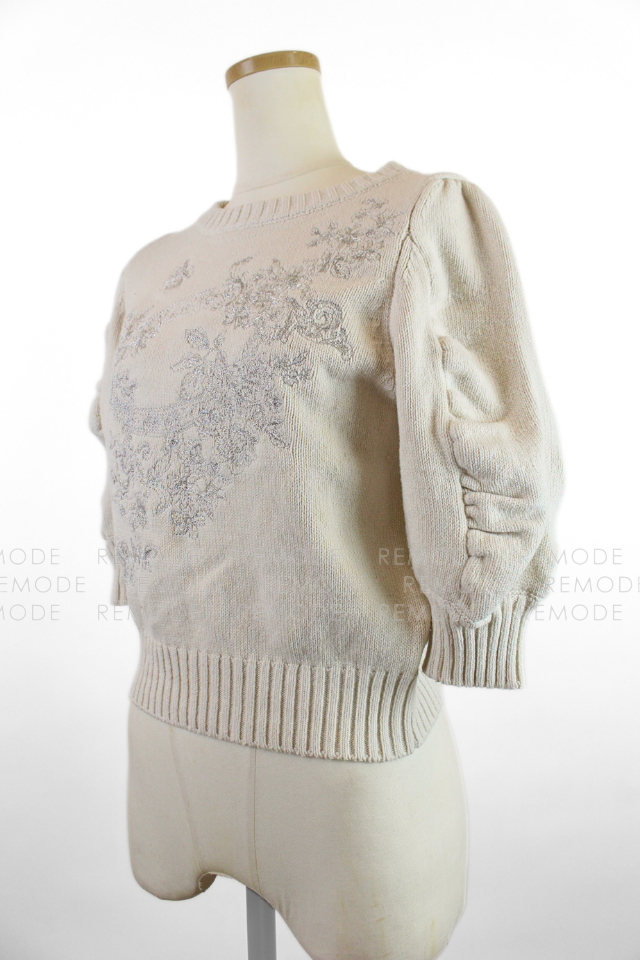 - 華やかな刺繍をフロントに施した、存在感のあるニットプルオーバー。 袖にはギャザーを、ふんわりとしたシルエットを実現。 身頃はすっきりと仕上げ、メリハリのある着こなしが叶います。 Tシャツ感覚で気軽に着用できるので、春夏コーデの主役として女性として大活躍の一枚です。