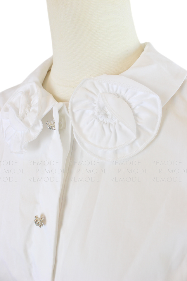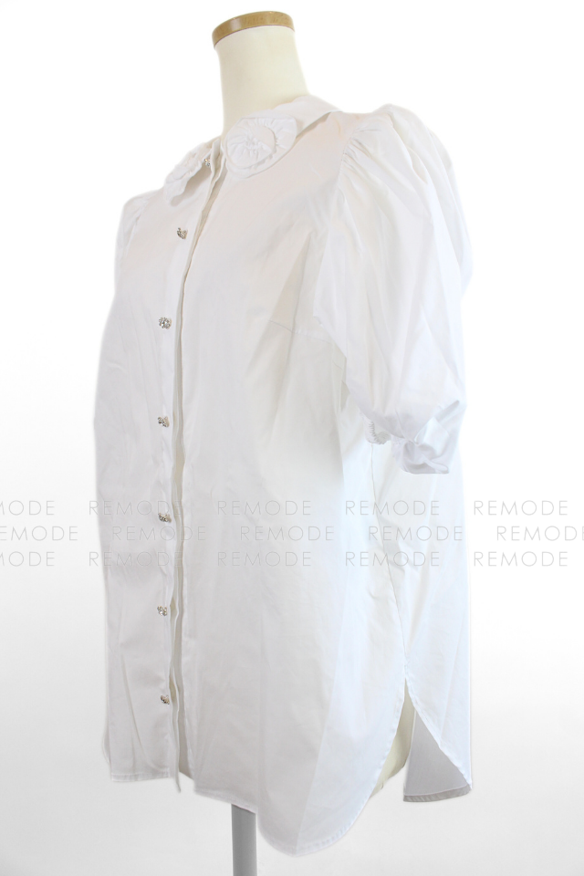 - 可憐なローズモチーフが顔まわりを明るく見せてくれる、ロマンティックなブラウス。きらめくボタンが上品なアクセントとなり、ギャザーを寄せたボリュームスリーブがトレンド感をプラスします。どんなボトムにも合わせやすいバランスの良いシルエットで、女性らしさときちんと感の両方を楽しめる一枚です。