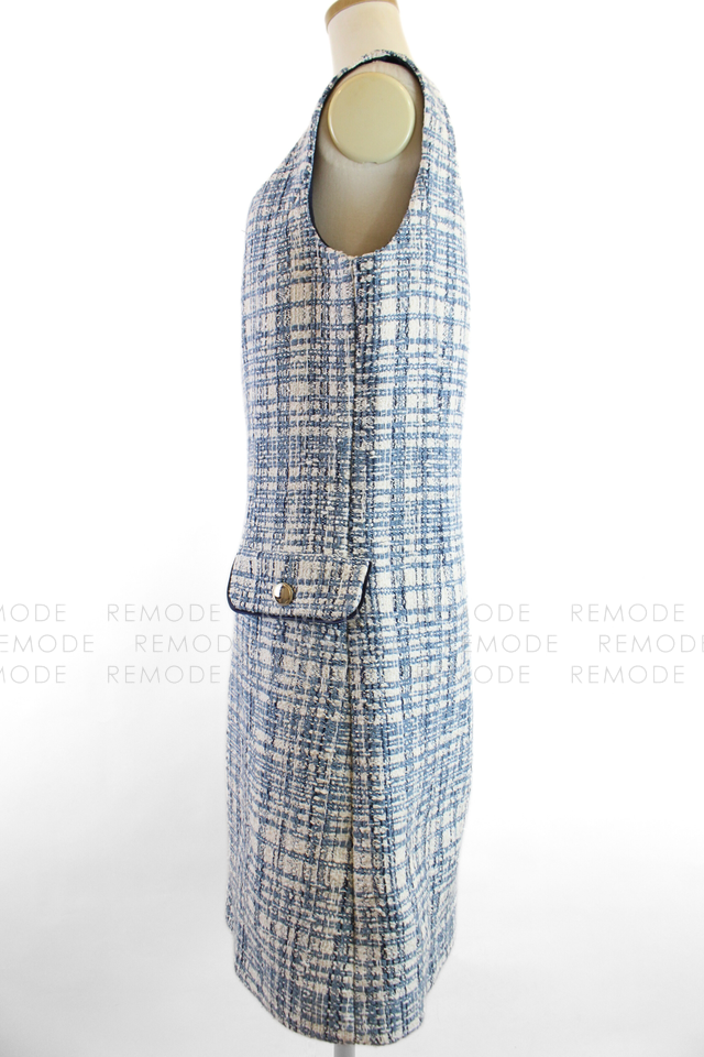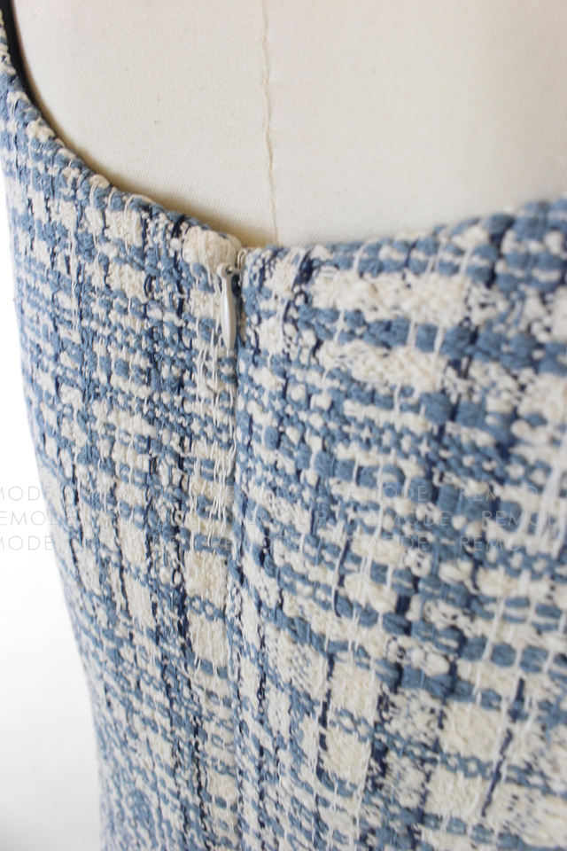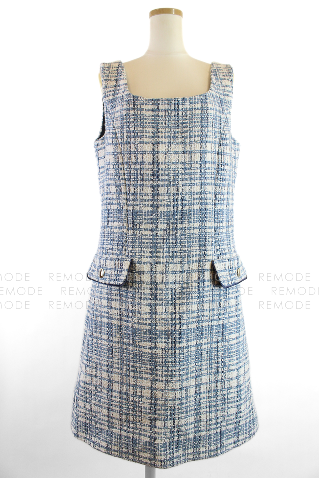 美しい発色のインポートツイードを使用し、フィット&フレアのシルエットで女性らしいラインを演出。