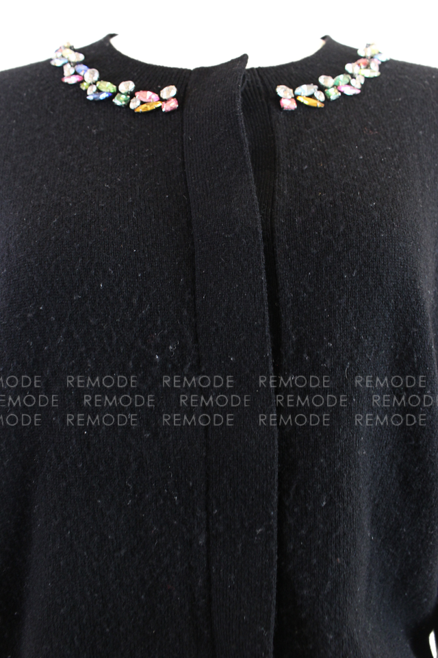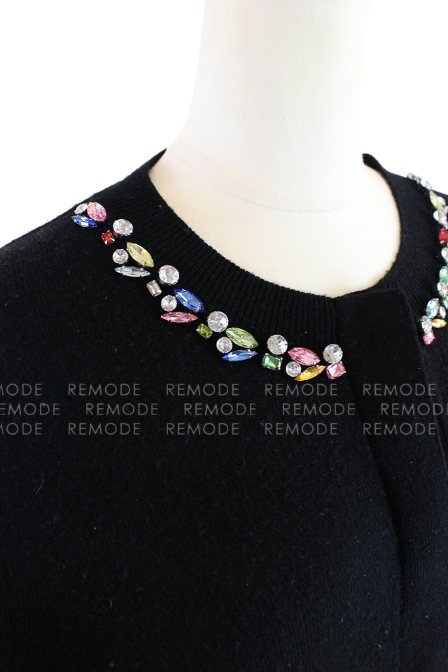 - 襟元にあしらったカラフルなビジューが顔まわりを華やかに彩るTARA JARMONのカーディガン。毛90%・カシミヤ10%の柔らかな風合いで、軽く暖かな着心地が魅力です。シンプルなブラックニットも一気にドレスアップでき、ワンピースやスカートに羽織るだけで上品なフレンチシックスタイルが完成します。