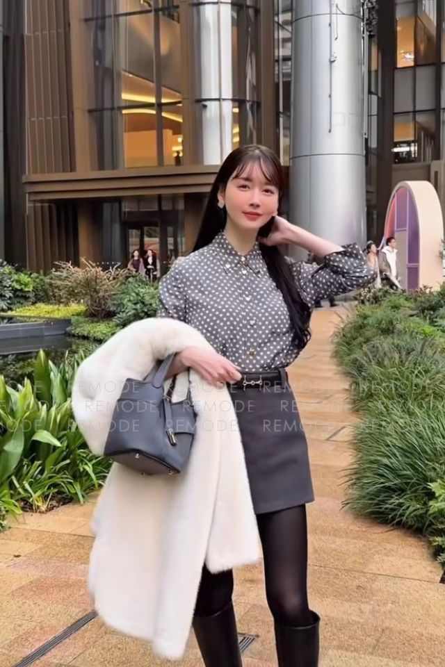 - チャコールグレー地にホワイトのミニハートが散りばめられた、TARA JARMONの「Charlot」シャツ。とろみのあるヴィスコース×シルク素材に、ゴールドのハートボタンがさりげない華やぎをプラスします。七分袖でジャケットインもしやすく、甘さとシックさを両立した大人のフェミニンブラウスです。