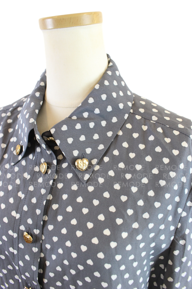 TARA JARMON|CHARLOT grey poplin shirt with white hearts ハート柄グレーシャツ|AYAKO