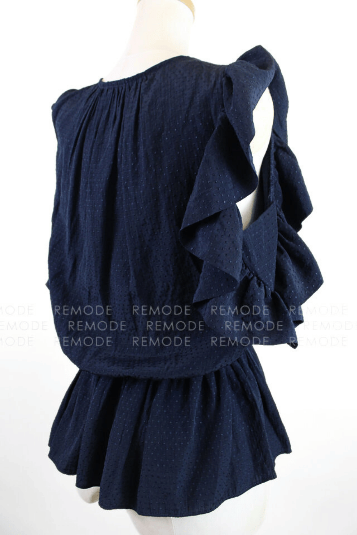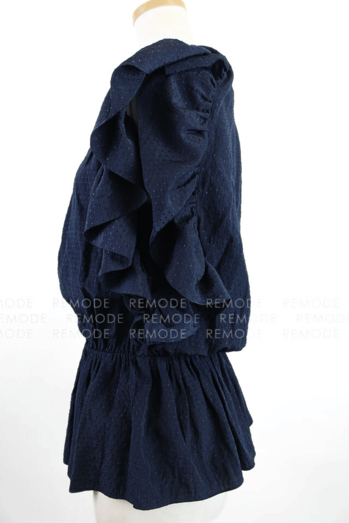 - ネイビー地にさりげないドットを散りばめた、TARA JARMONのペプラムブラウス。肩から袖にかけてたっぷり入ったフリルと、ウエストギャザーからふわりと広がるペプラムシルエットが女性らしい一枚です。デニムでカジュアルにも、細身パンツできれいめにも着回せて、夏のワンツーコーデがぐっと華やぎます。