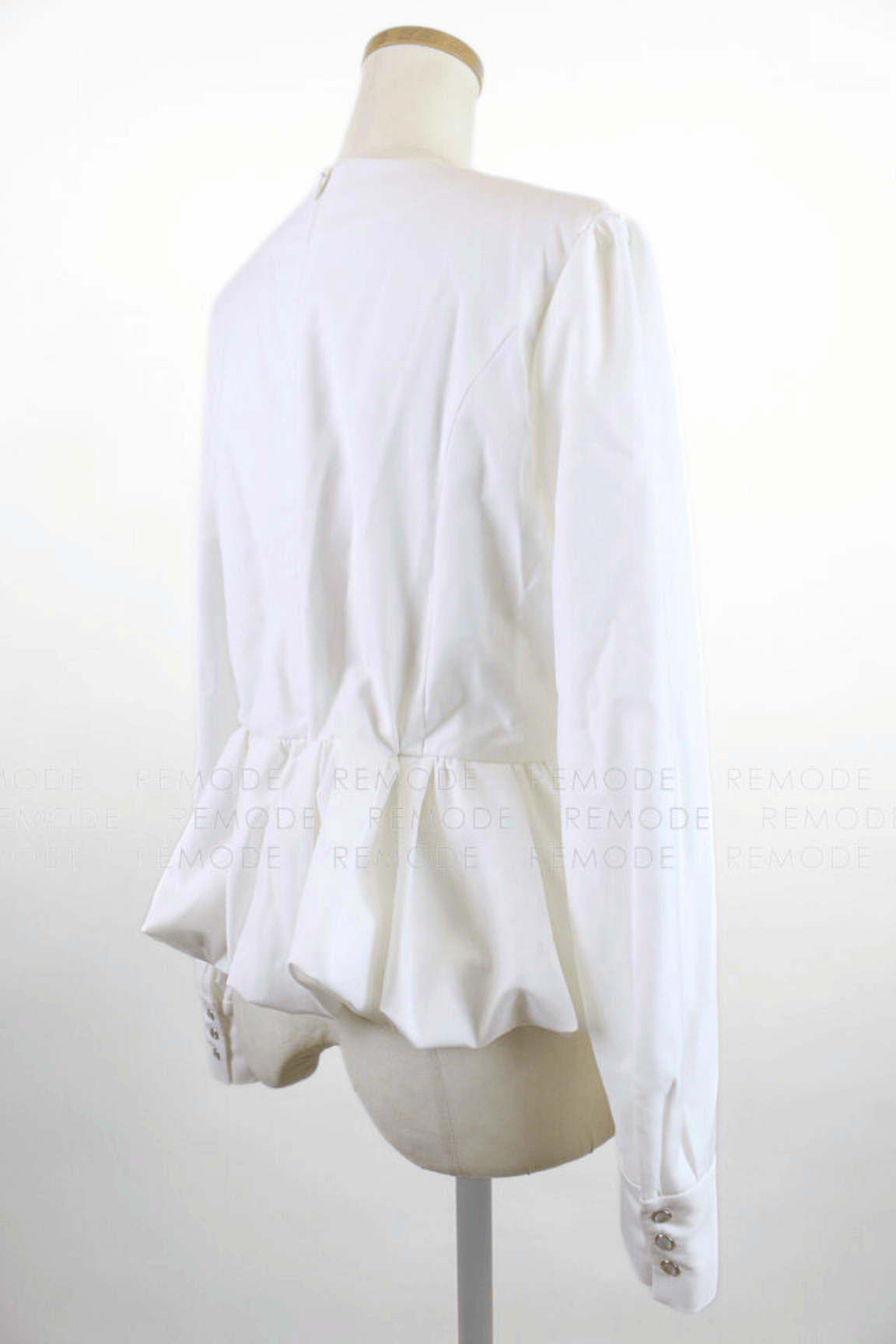 - 立体的なフォルムが映える、上品なバルーンペプラムトップス。ふんわりと広がるシルエットがウエストラインを美しく引き立て、女性らしい柔らかさをプラスします。小粒のドットボタンをあしらったデザインが、シンプルな中にさりげないアクセントを添え、洗練された印象に。スカートにもパンツにも合わせやすく、シーンを問わず活躍するタイムレスな一枚です。