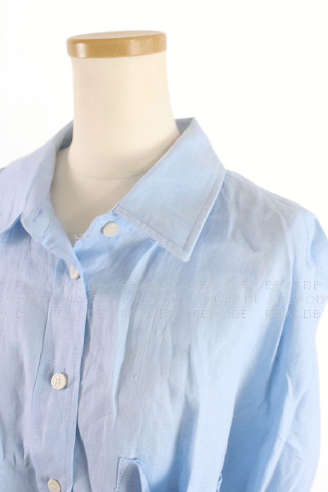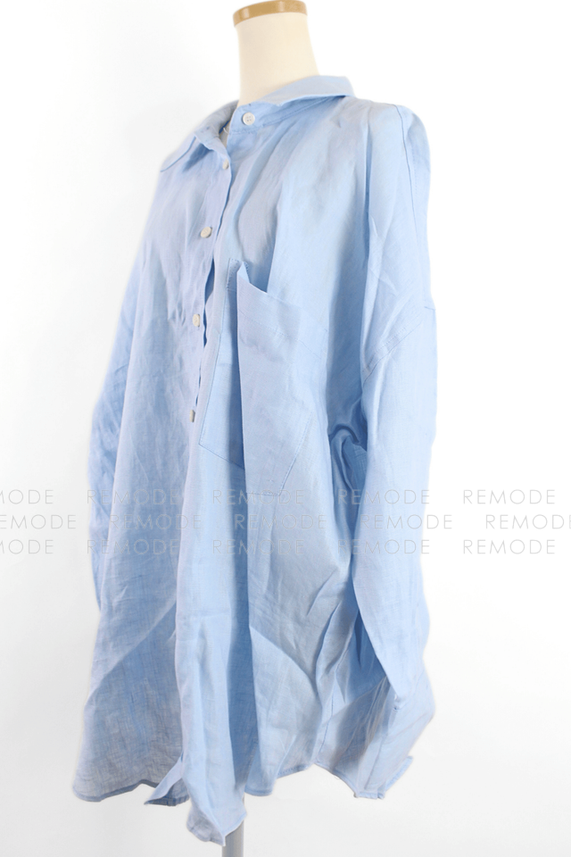 - リネン100%オーバーサイズシャツ。ハリのあるさらりとした生地感で、爽やかなサックスブルーがコーデを明るく見せてくれます。ゆったりシルエットで体のラインを拾わず、羽織りとしても一枚着としても活躍。
