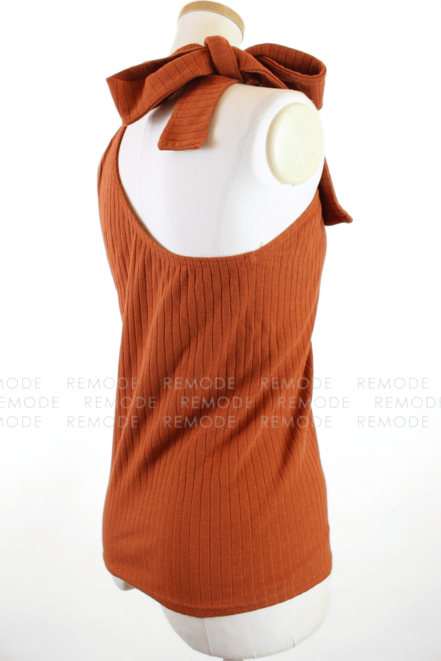 Estella.K|ワンショルダーリボンランダムリブニットトップス(テラコッタ)|CHIHA