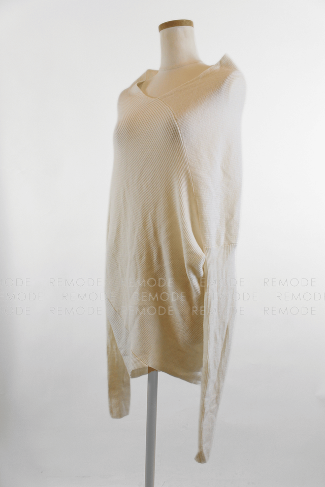 - P.A.R.O.S.H.のLEILA25ウール100%変形ニットプルオーバー。身頃をゆったり包み込むポンチョ風シルエットに、ひじ下だけ細く伸びるスリーブがモードな一枚。柔らかなアイボリーカラーと斜めに入るドレープが体のラインをさりげなくカバーしつつ、こなれ感のあるスタイリングを叶えてくれます。