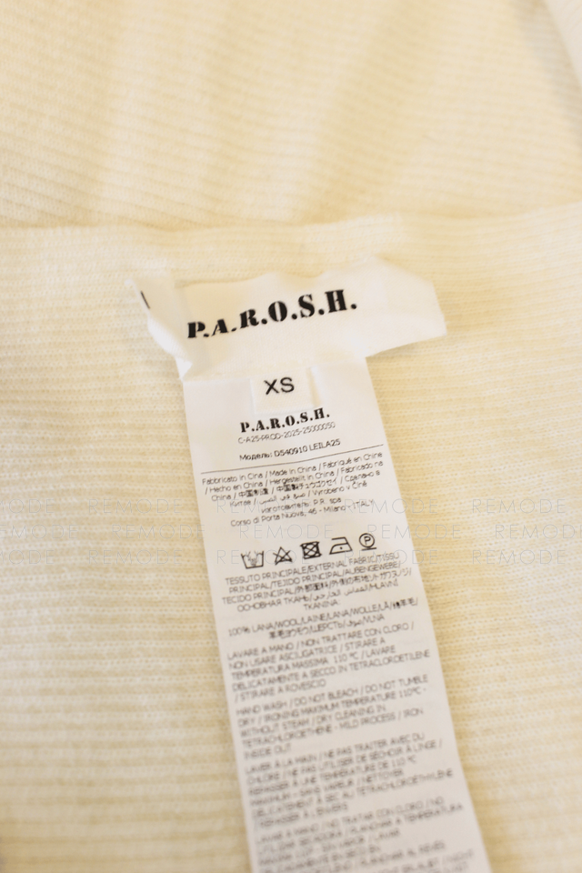 - P.A.R.O.S.H.は、1980年代にスタートしたイタリアのラグジュアリーブランド。ヴィンテージ感とモダンさを掛け合わせたデザインが魅力で、上質素材や繊細な装飾を用いたアイテムに定評があります。国内流通は比較的少なく、中古市場でも出回りの少ないブランドです。